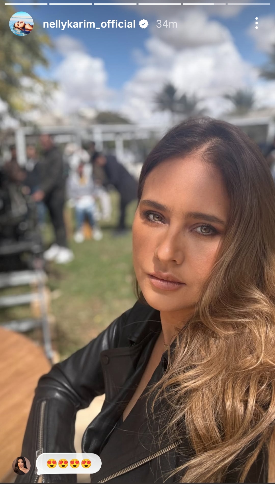 وظهرت نيللي بإطلالة شتوية أنيقة، مرتدية جاكيت جلد باللون الأسود ،لتكشف عن جمالها وأناقتها.