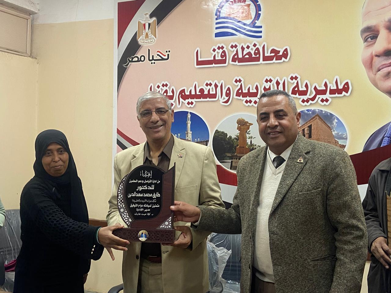 وتخلل الاجتماع تكريم طارق سعد الدين وكيل الوزارة لدعمه المتواصل لوحدة التواصل ودعم المعلمين، بالاضافة إلى تكريم سعيد خليفة تغيان كبير معاونى المديرية لبلوغه السن القانونية للمعاش، وتكريم عدداً من النماذج المتميزة والملهمة من المعلمين الباحثين والحاصلين على الشهادات العلمية.