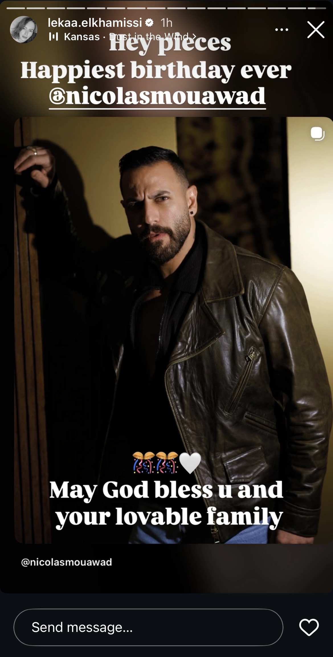 حرصت الفنانة لقاء الخميسي، على تهنئة الفنان اللبناني نيكولا معوض بمناسبة عيد ميلاده.