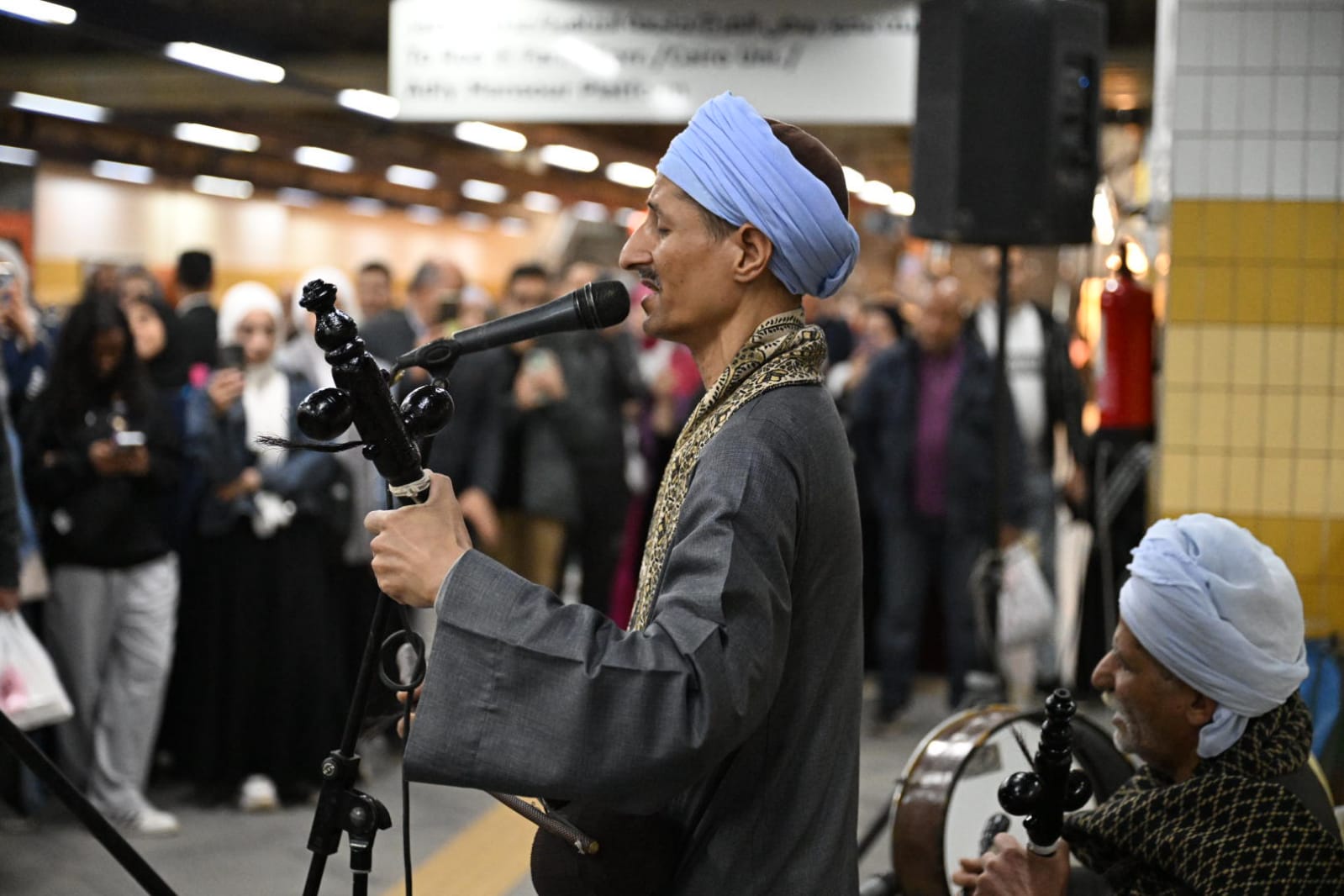 في مشهد غير مألوف داخل أروقة مترو الأنفاق، استقبلت محطة جمال عبد الناصر، اليوم الاثنين، جمهورها بمفاجأة ثقافية تمثلت في عرض فني حي لرواة السيرة الهلالية، وقد لفت العرض انتباه الركاب وأثار فضولهم، قبل أن يتحول سريعا إلى حالة من التفاعل والبهجة بين الحاضرين.