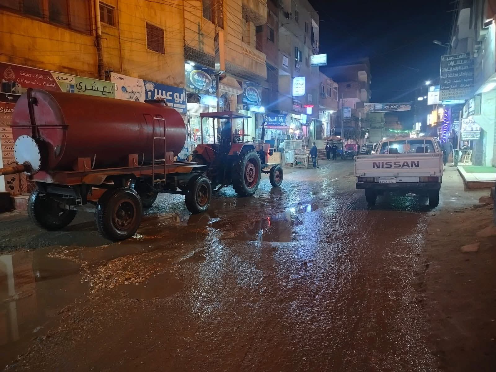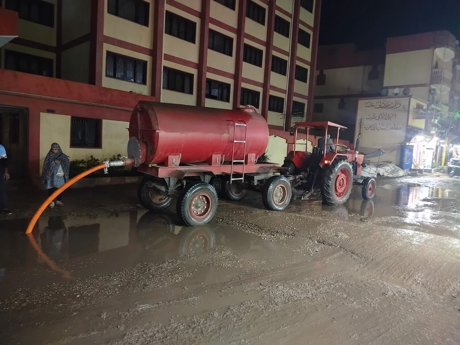 وعلى الفور، دفعت الوحدة المحلية بمعدات الحملة الميكانيكية وسيارات شفط المياه وفرق جهاز النظافة، ومعدات بالوحدات المحلية القروية، للتعامل الفوري مع بؤر التجمعات بالشوارع الرئيسية والفرعية وعدد من المناطق الحيوية.