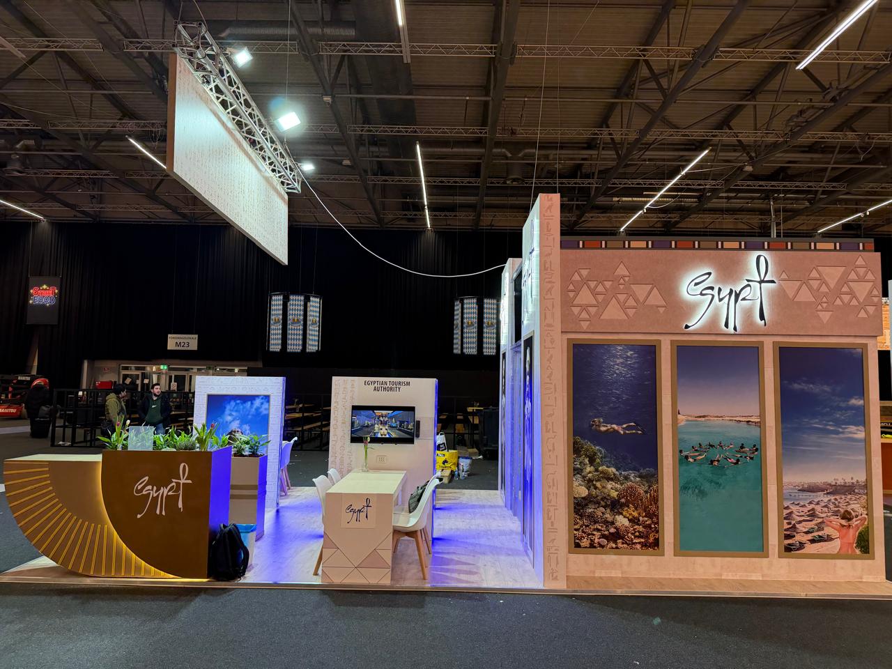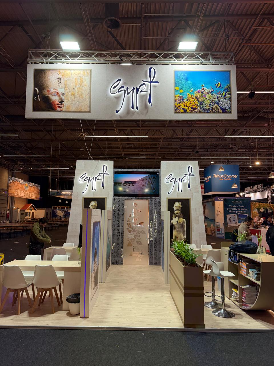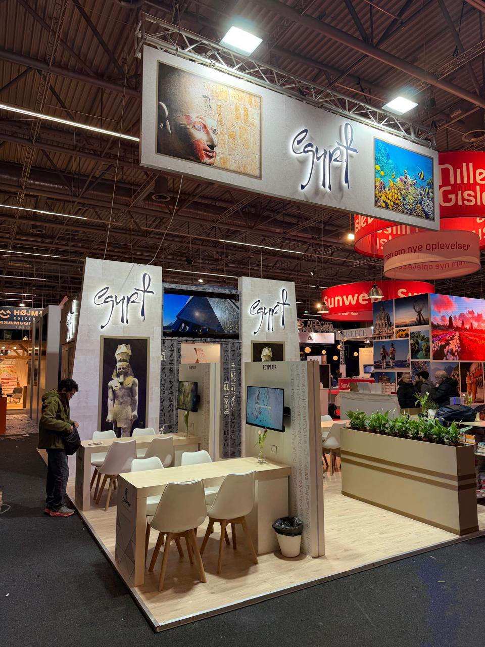 افتتح الجناح المصري السفير محمد منير لطفي سفير مصر لدى الدنمارك، بحضور وفد الهيئة المصرية العامة للتنشيط السياحي، الذي ضم الدكتور محمد عطا عضو الإدارة العامة لمكتب الرئيس التنفيذي للهيئة، وعبد الحميد لاشين عضو الإدارة العامة للترويج السياحي.