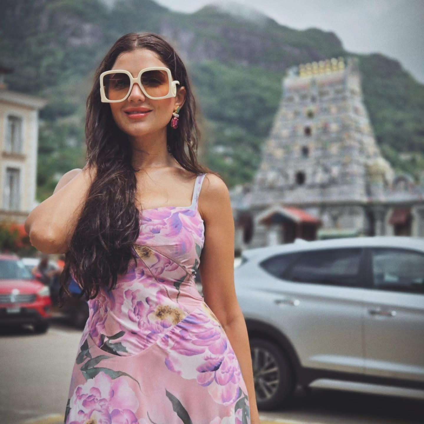 ومن الناحية الجمالية تعتمد على وضع الماكياج بلمسات بسيطة من الألوان الهادئة، تاركة خصلات شعرها منسدلة علي كتفيها.