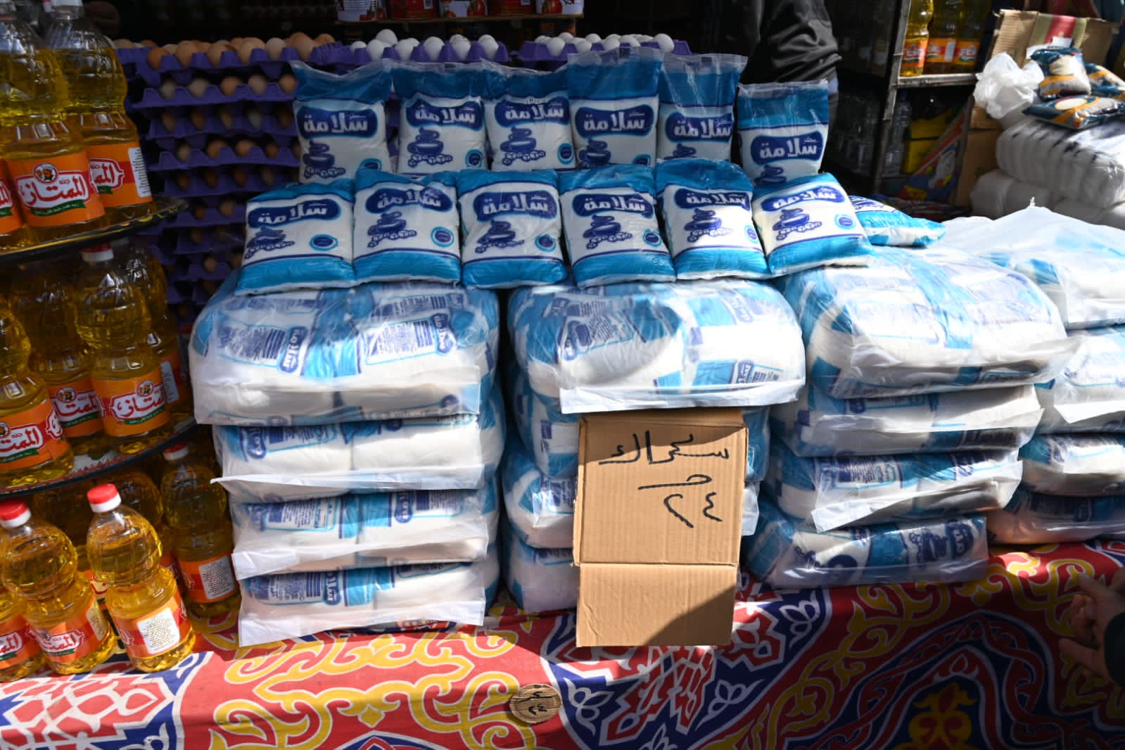 واستمع اللواء دكتور علاء عبدالمعطي إلى ملاحظات المواطنين وآرائهم بشأن مستوى التخفيضات وتوافر السلع، حيث أكدوا رضاهم عن تنوّع المعروض واستقرار الأسعار، فيما شدّد المحافظ على ضرورة الالتزام الكامل بالإعلان الواضح عن الأسعار وتحديثها أولًا بأول. ويضم المعرض تشكيلة واسعة من السلع تشمل ياميش رمضان والتمور وقمر الدين والمشروبات والعصائر والمخللات والزيت والسكر والأرز والمكرونة، إلى جانب الأسماك واللحوم الطازجة والدواجن المجمدة والبيض والمخبوزات والبقوليات ومنتجات الألبان، فضلًا عن الفاكهة والخضروات والمنظفات والعطارة، بما يلبي مختلف احتياجات الأسرة خلال الشهر الكريم.