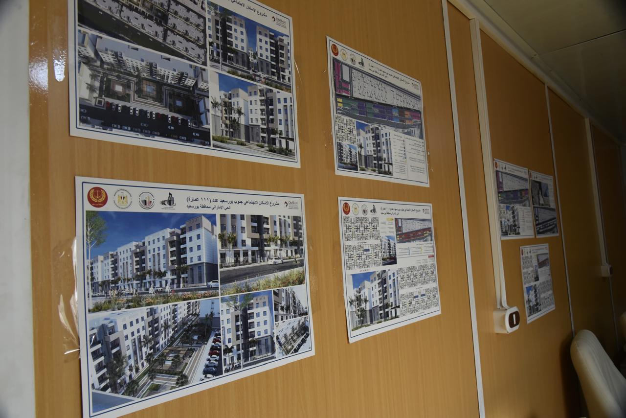 وتم استعراض الموقف التنفيذي للمشروع، و الجدول الزمني المحدد للمشروع ، حيث يضم المشروع 111عمارة اسكان اجتماعي وينفذ تحت إشراف الجهاز المركزي لتعمير سيناء " منطقة تعمير بورسعيد"