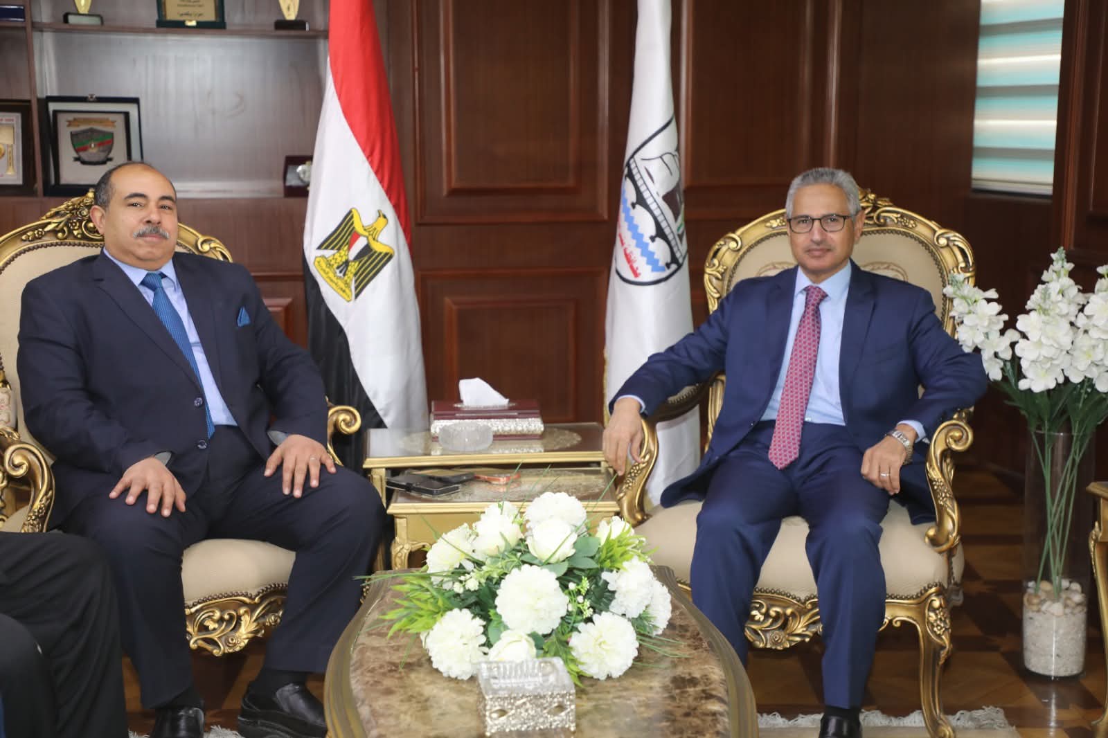 استقبل اللواء عبد الله عبد العزيز محافظ بني سويف، بمكتبه اليوم، اللواء أسامة جمعة مساعد وزير الداخلية مدير أمن بني سويف، يرافقه عدد من القيادات الأمنية بالمديرية، وذلك لتقديم التهنئة للمحافظ بمناسبة توليه مهام منصبه الجديد، متمنين له التوفيق والسداد في أداء مسؤولياته، واستكمال مسيرة التنمية بالمحافظة، في إطار حركة المحافظين الأخيرة.