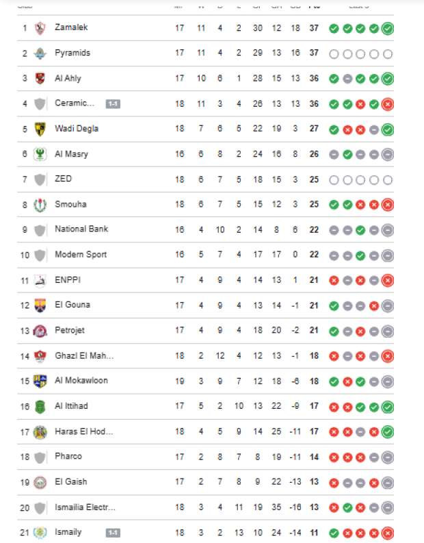 ويحتل بيراميدز المركز الثاني بفارق الأهداف عن الزمالك، بينما تراجع الأهلي إلى المركز الثالث بفارق نقطة واحدة عن المتصدر، لتشتعل المنافسة على لقب الدوري في الجولات المقبلة.