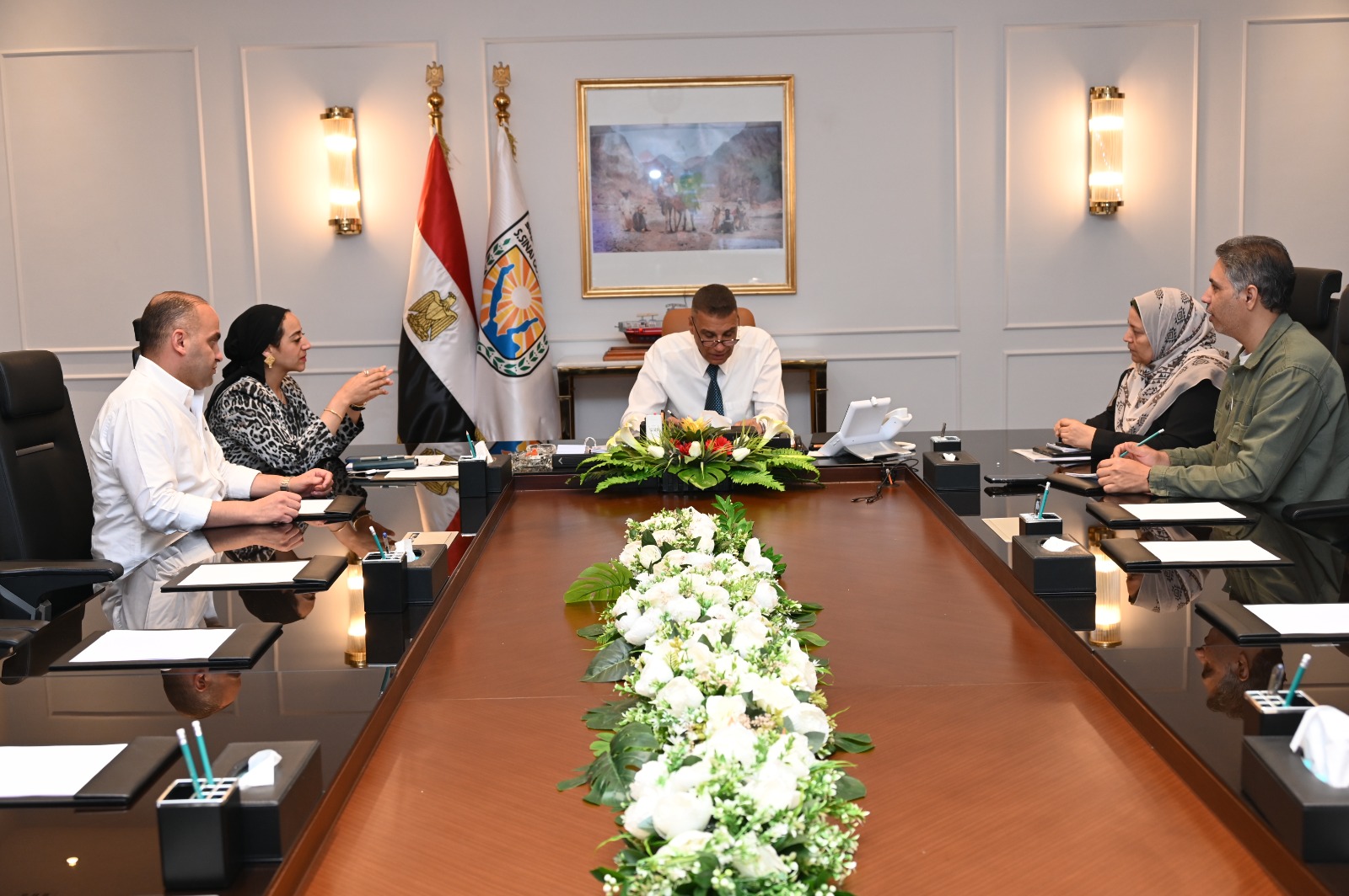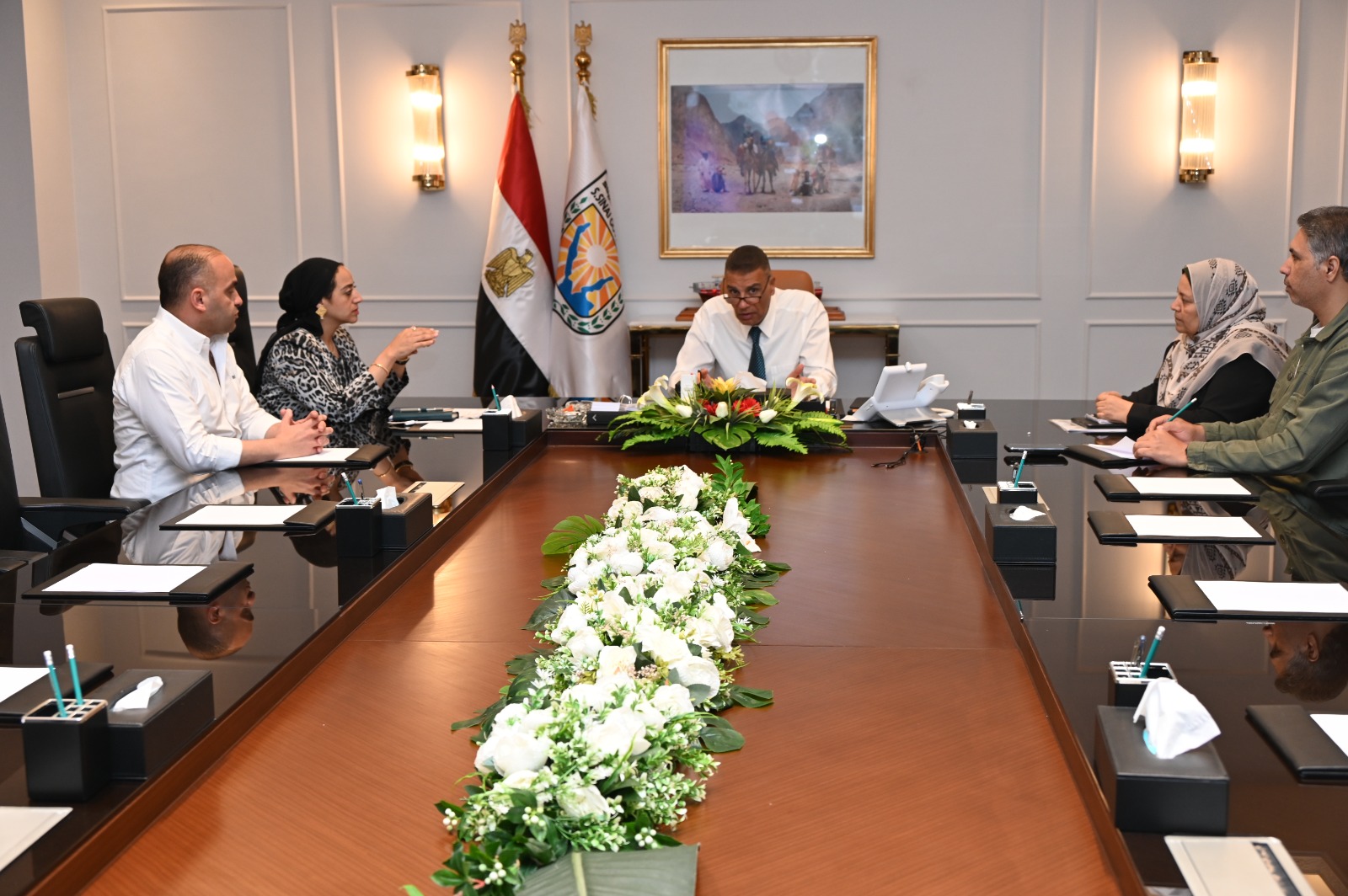 عقد اللواء الدكتور إسماعيل محمد كمال، محافظ جنوب سيناء، اجتماعًا موسعًا بمكتبه في مدينة شرم الشيخ، لمتابعة الموقف التنفيذي لمنظومة مياه الشرب والصرف الصحي بجميع مدن المحافظة، وذلك بحضور الدكتورة إيناس سمير، نائب المحافظ، والمهندسة حنان عمر، رئيس قطاع مياه الشرب والصرف الصحي، واللواء نادر علام، رئيس مجلس مدينة شرم الشيخ، وعدد من القيادات التنفيذية والمعنيين بالقطاع.