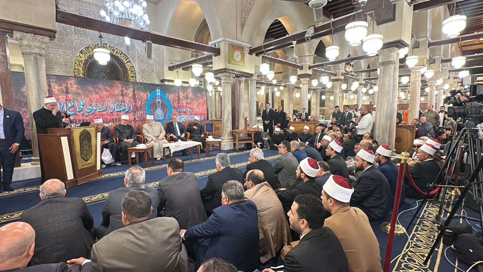 وبدأت الاحتفالية بتلاوة آيات من الذكر الحكيم، يعقبها كلمات لعدد من قيادات الأزهر، تتناول المكانة التاريخية للجامع الأزهر، ودوره العلمي والدعوي الممتد عبر أكثر من عشرة قرون، وما قدمه من إسهامات في خدمة قضايا الأمة ونشر منهج الوسطية والاعتدال.