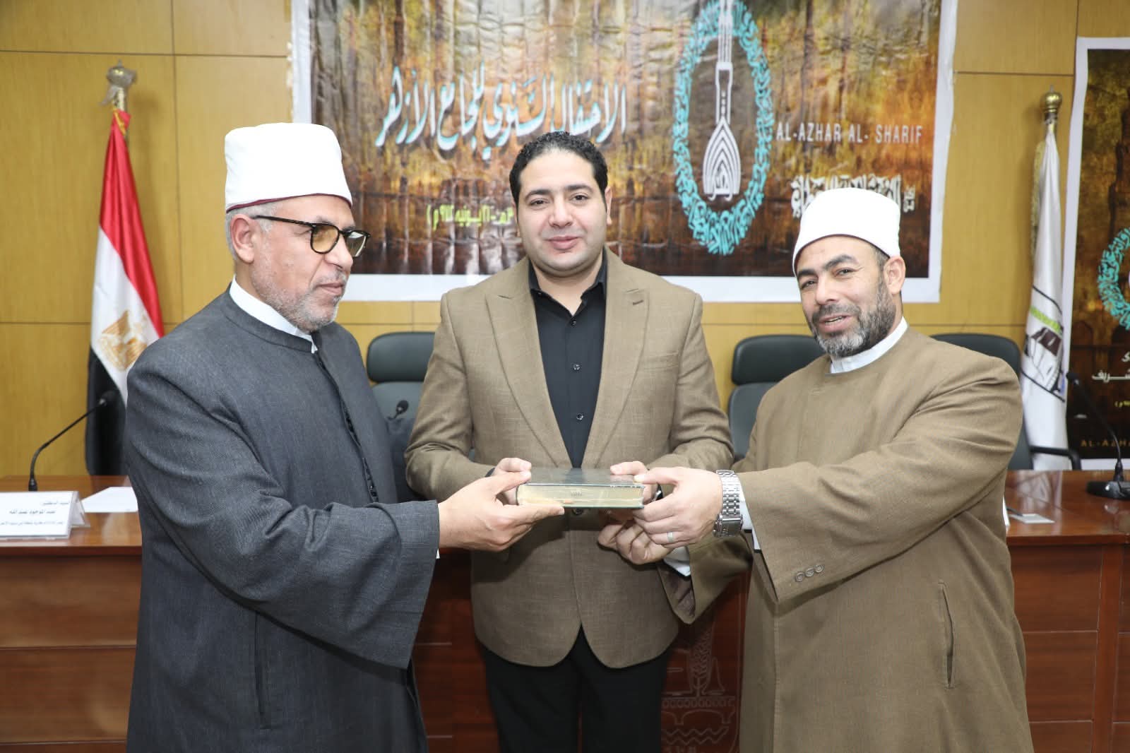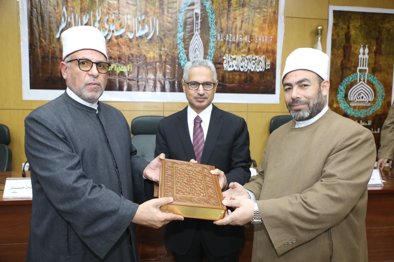 وفي ختام الاحتفالية تسلم محافظ بني سويف نسخة هدية من المصحف الشريف تم إهداؤها من المنطقة الأزهرية ، بجانب إهداء نسختن من كتاب الله لنائب المحافظ والمستشار العسكري للمحافظة ، حيث أعرب محافظ بني سويف عن تقديره لكافة القيادات وأسرة العاملين بقطاعي الأزهر والأوقاف ، مشيرا إلى اعتزازه بأن يكون أول لقاء جماهيري في احتفالية ترعاها مشيخة الأزهر الشريف.