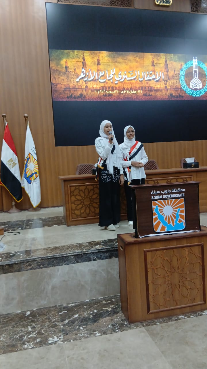 نظمت محافظة جنوب سيناء، اليوم الأربعاء، احتفالية اليوم السنوي لـ الجامع الأزهر، بمناسبة مرور 1086 عامًا على تأسيسه في السابع من شهر رمضان المبارك عام 361 هـ، بقاعة الكبرى بديوان عام المحافظة.