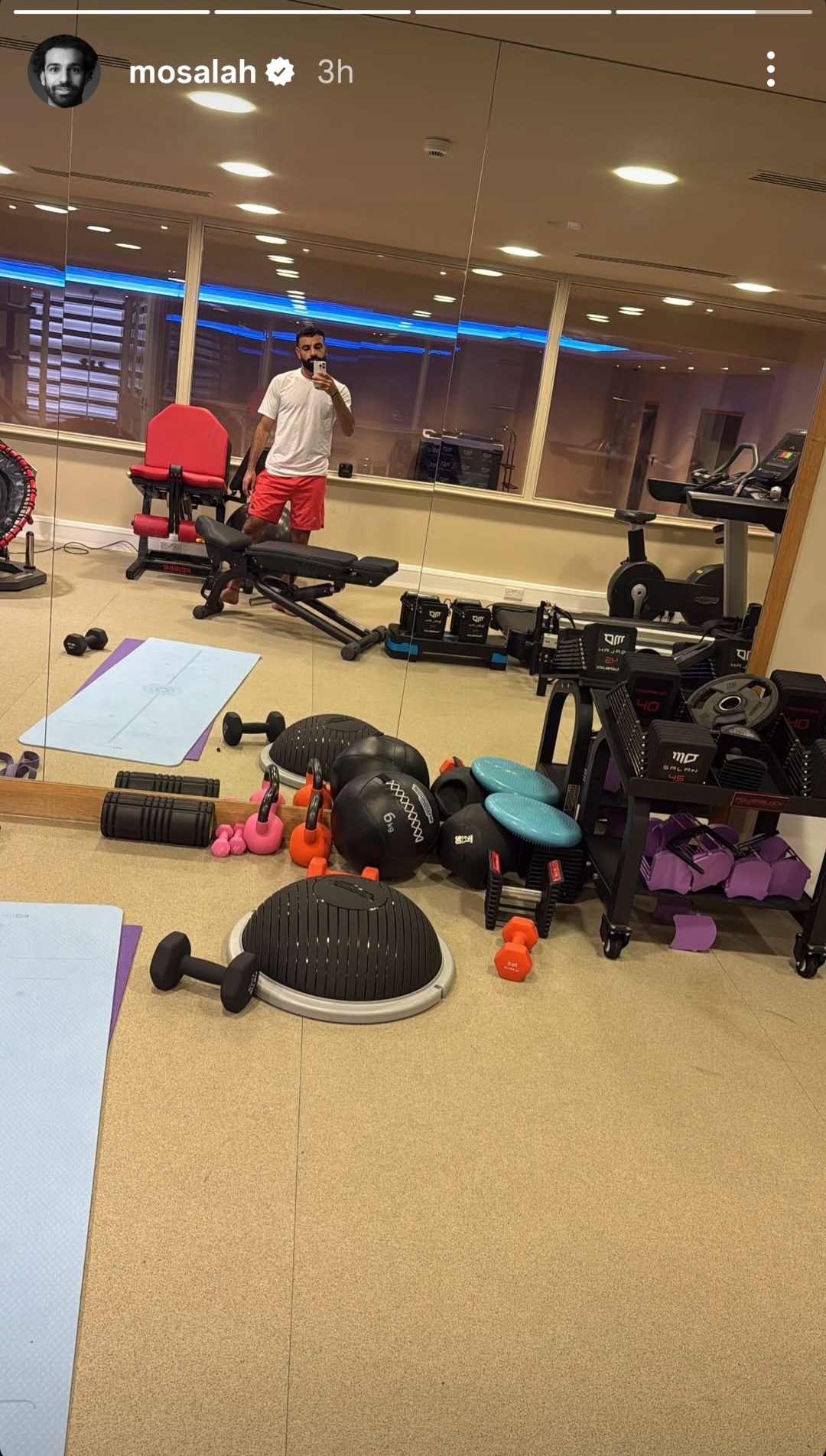 شارك النجم المصري محمد صلاح، جمهوره عبر حسابه الشخصي بموقع التواصل الاجتماعي “إنستجرام”، صورا جديدة من الجيم.