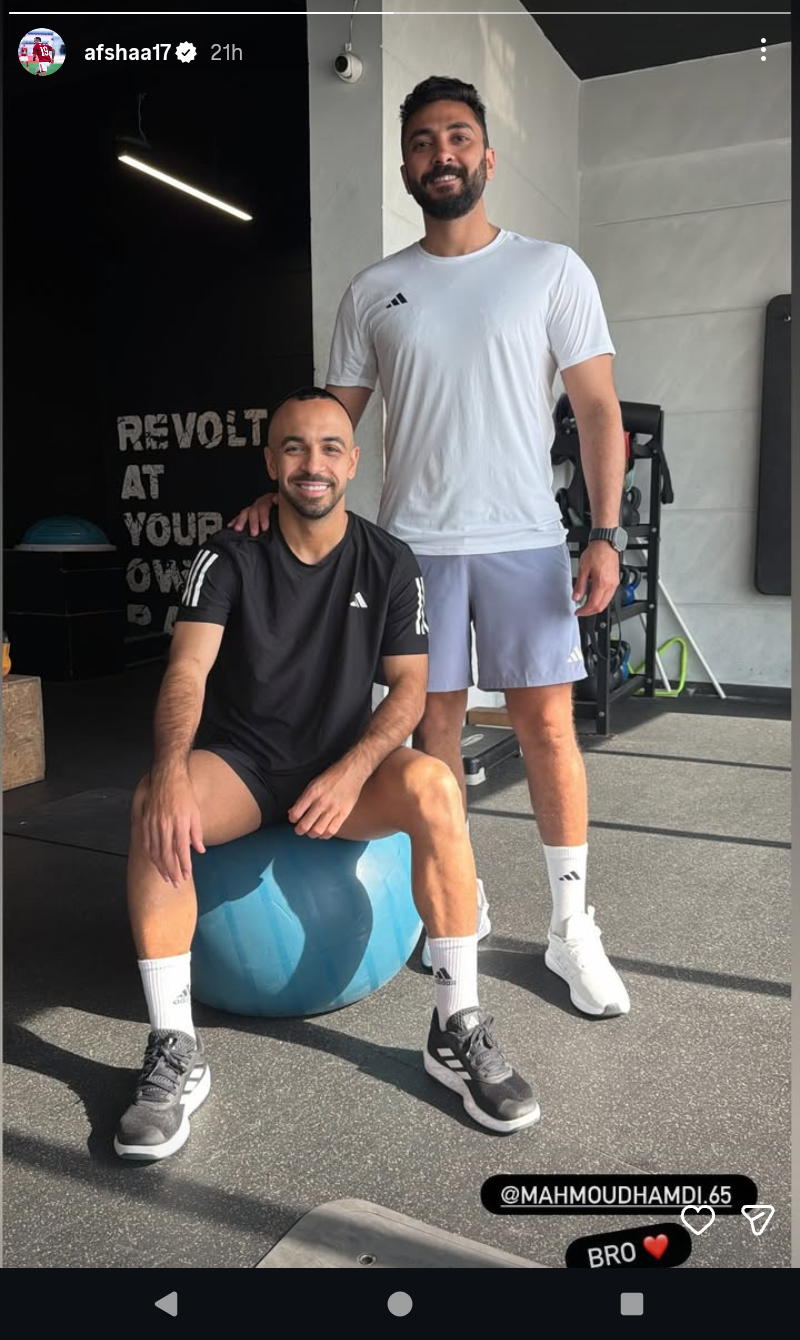 وظهر أفشة في الصورة رفقة الكابتن محمود حمدي من داخل الجيم أثناء مرانه اليومي.