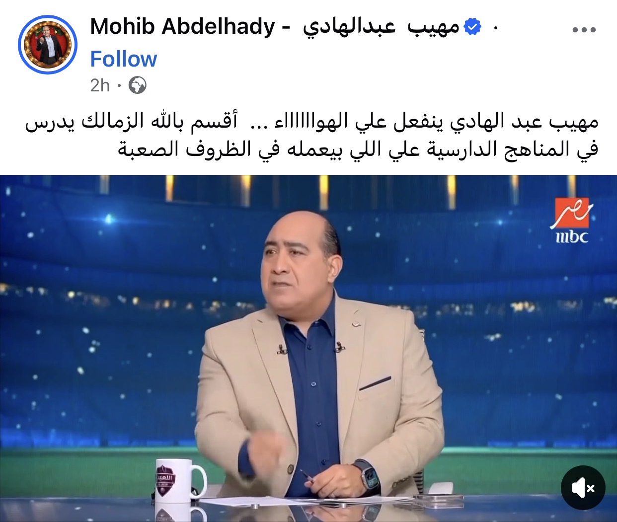 وكتب مهيب عبد الهادي عبر حسابه علي فيسبوك "أقسم بالله الزمالك يدرس في المناهج الدارسية علي اللي بيعمله في الظروف الصعبة"