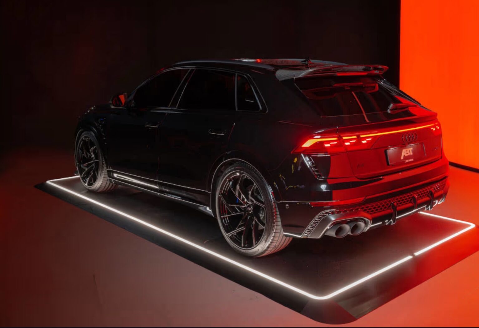 لم تقتصر تعديلات ABT على الجوانب الميكانيكية، بل شملت أيضًا عناصر تصميمية واضحة تعزز الحضور البصري للسيارة، حيث ارتكزت النسخة المعدلة على عجلات رياضية قياس 23 بوصة من طراز HIGH PERFORMANCE IR23RSQ8-S، ما يمنح السيارة مظهرًا أكثر اتساعًا وثباتًا على الطريق.