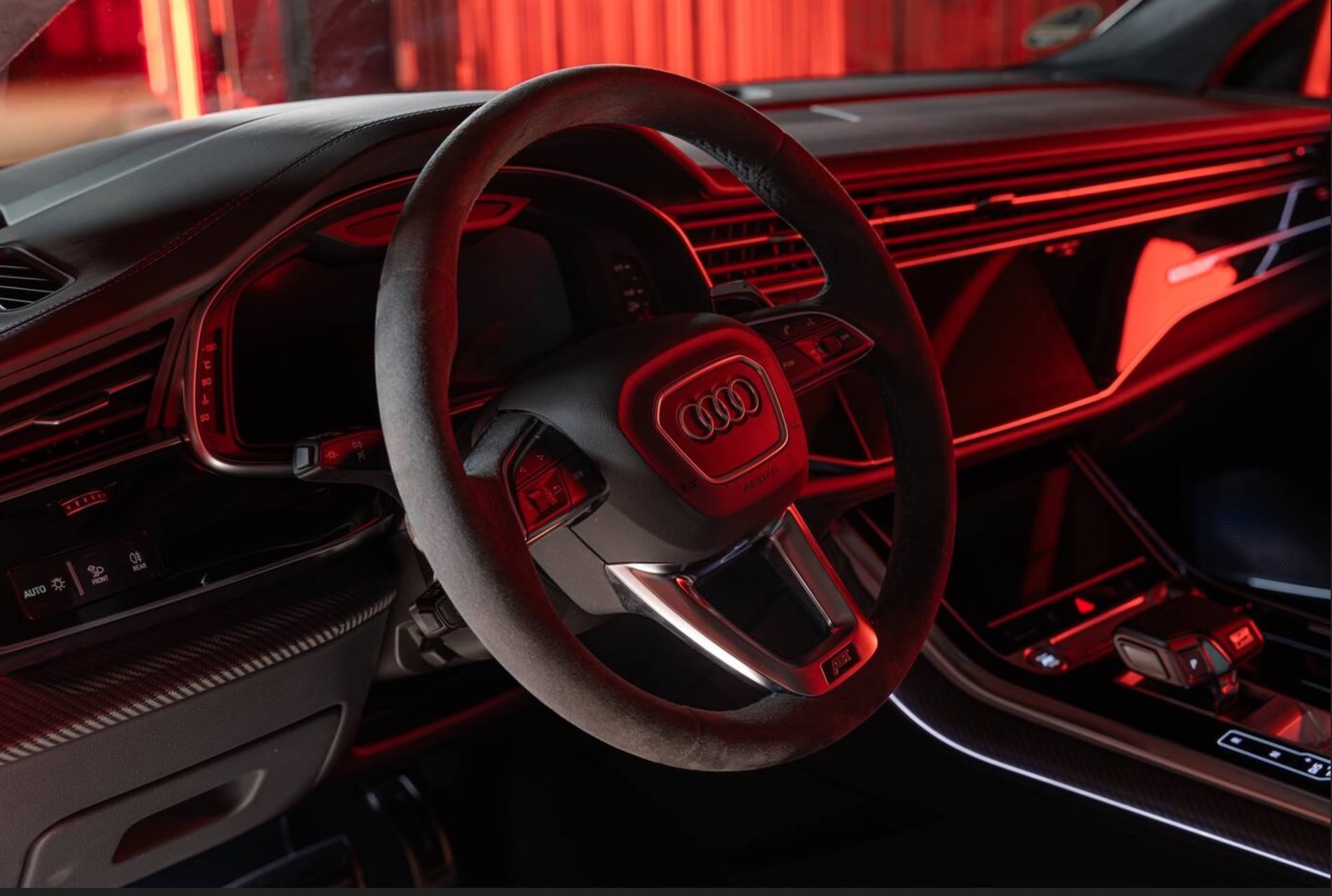 وتحافظ السيارة على ملامحها الحادة في المقدمة، مع مصابيح أمامية تعمل بتقنية LED تعزز الرؤية الليلية وتنسجم مع الخطوط التصميمية التي تتسم بالشراسة، وتتكامل هذه العناصر مع بقية الإضافات الخارجية لتقديم مظهر أكثر جرأة دون تغيير جوهري في هوية RS Q8 الأساسية.