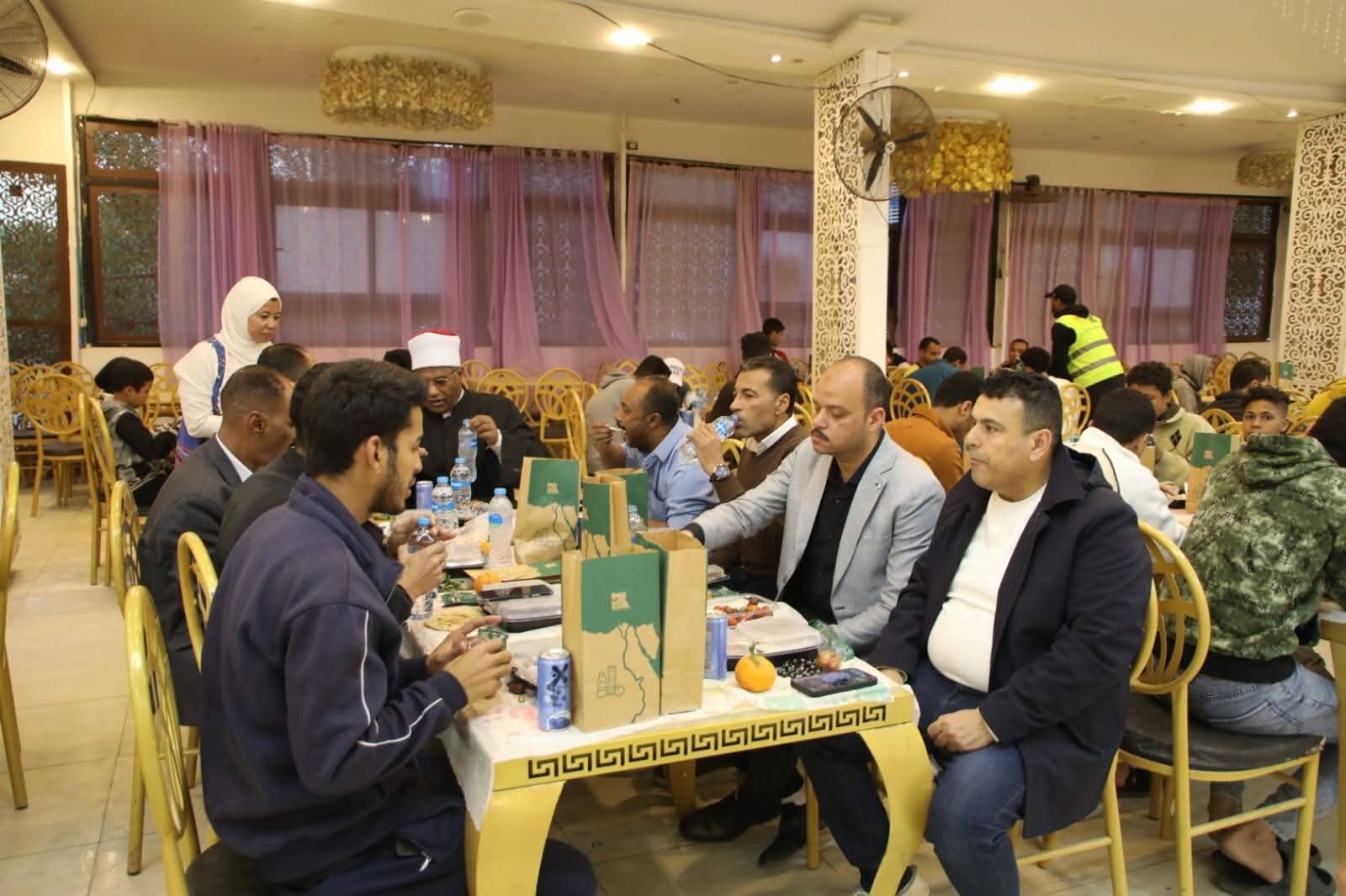 شارك محمد كجك نائب محافظ الوادي الجديد، اليوم، الأسر والطلاب الوافدين الإفطار الرمضاني المقام بمدينة بالخارجة.