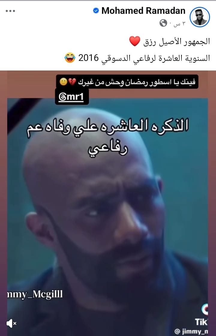 ونشر الفنان محمد رمضان، مقطع فيديو على حسابه بموقع "فيسبوك" وكتب"الجمهور الأصيل رزق السنوية العاشرة لرفاعي الدسوقي 2016 "