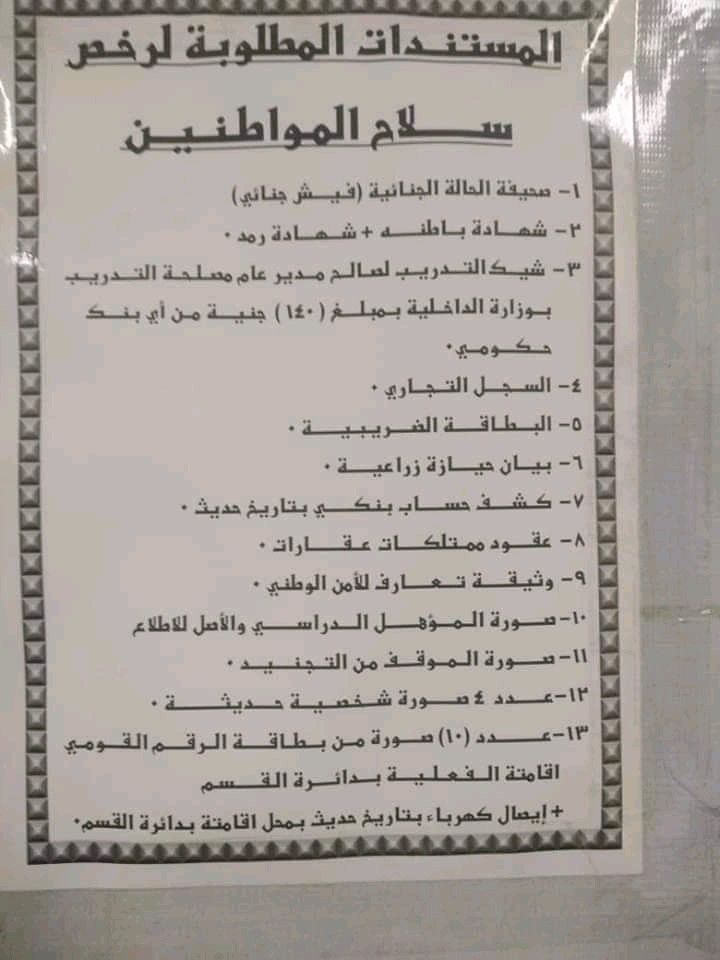 ـ طلب ترخيص سلاح يقدم إلى مأمور القسم الذي يتبعه محل إقامة.