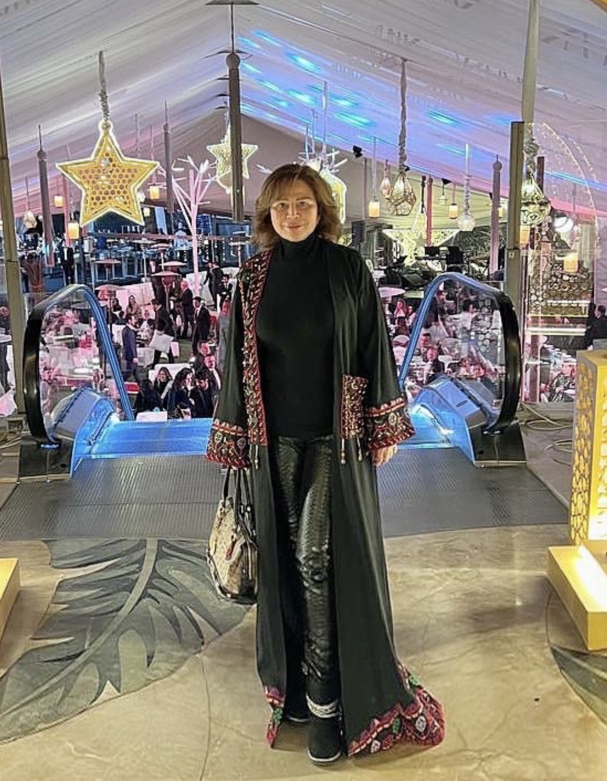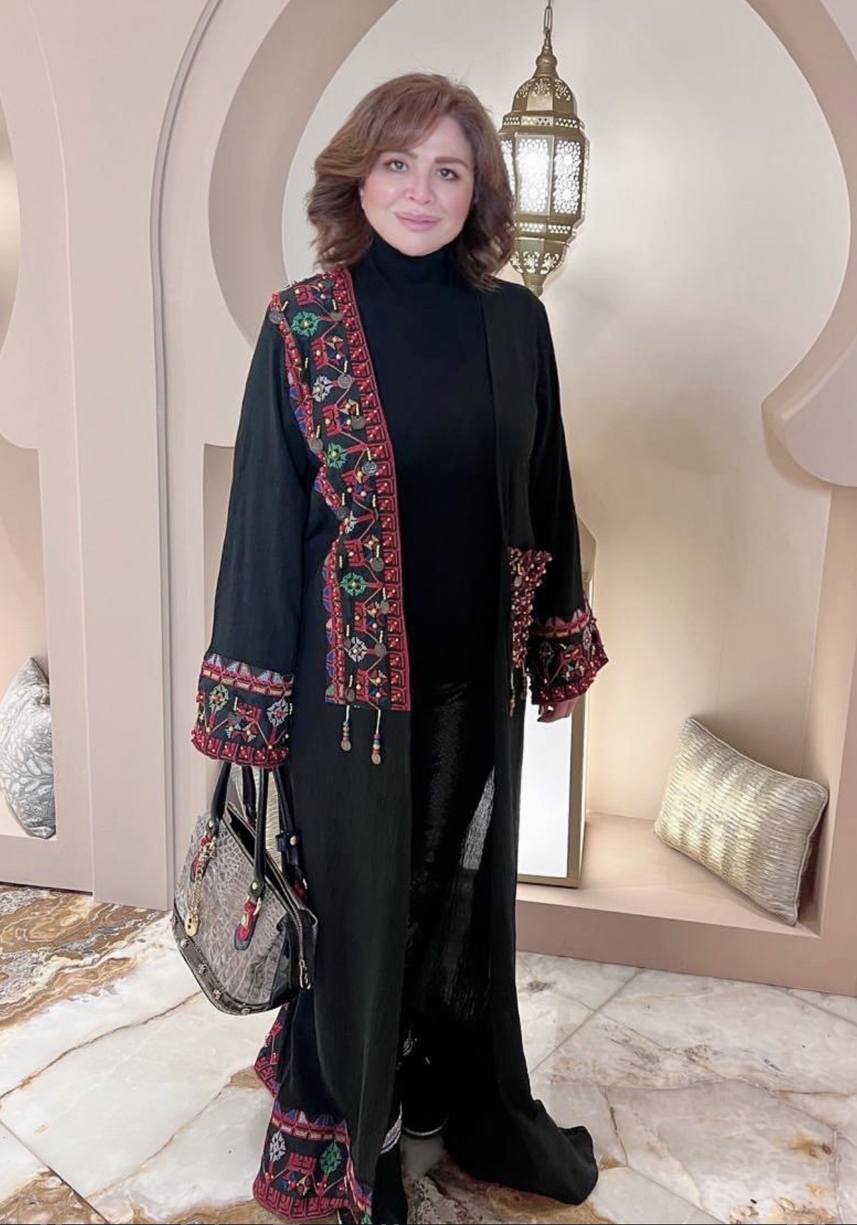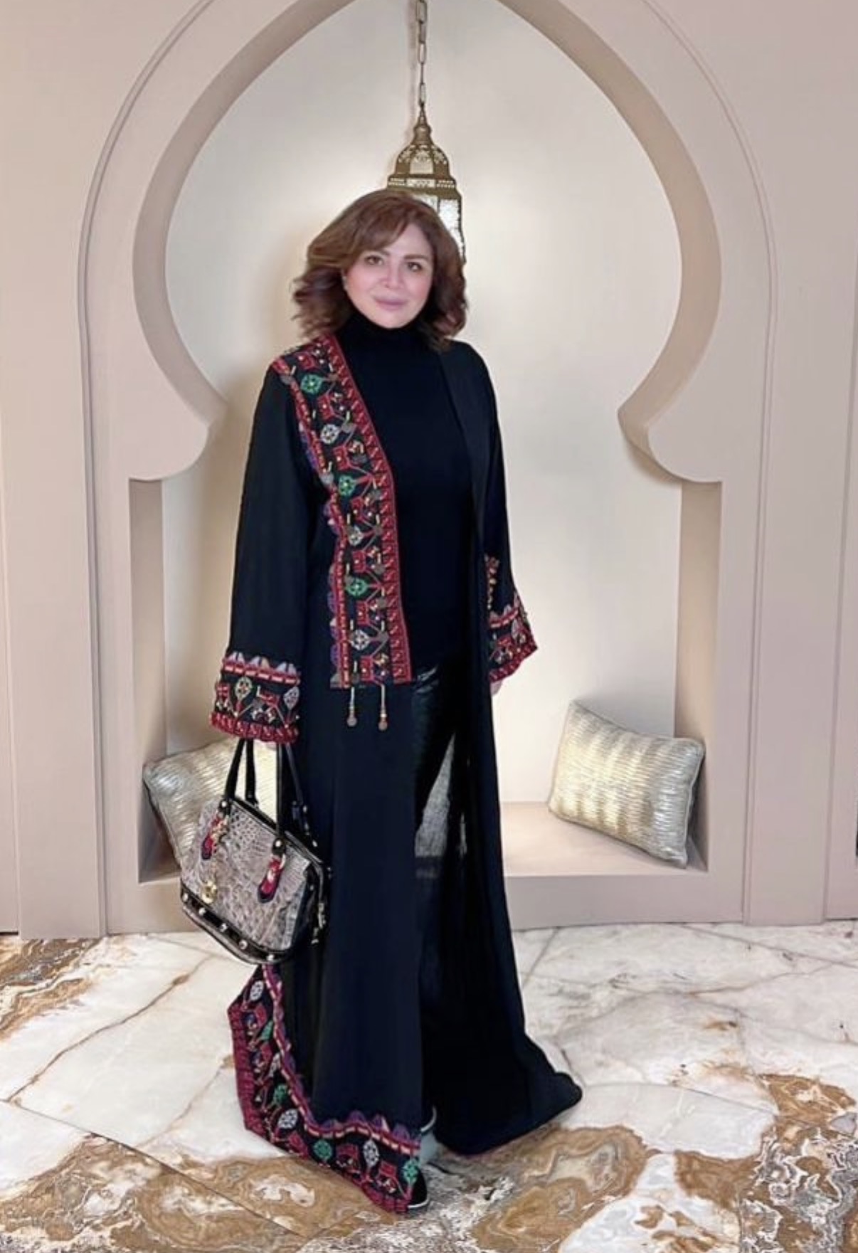 تألقت إلهام شاهين في الصور بإطلالة رمضانية، حيث ظهرت مرتدية قفطان باللون الأسود المزين ببعض التطريزات ذات الألوان المتناسقة ونسقت معه بنطلون و توب باللون الأسود.
