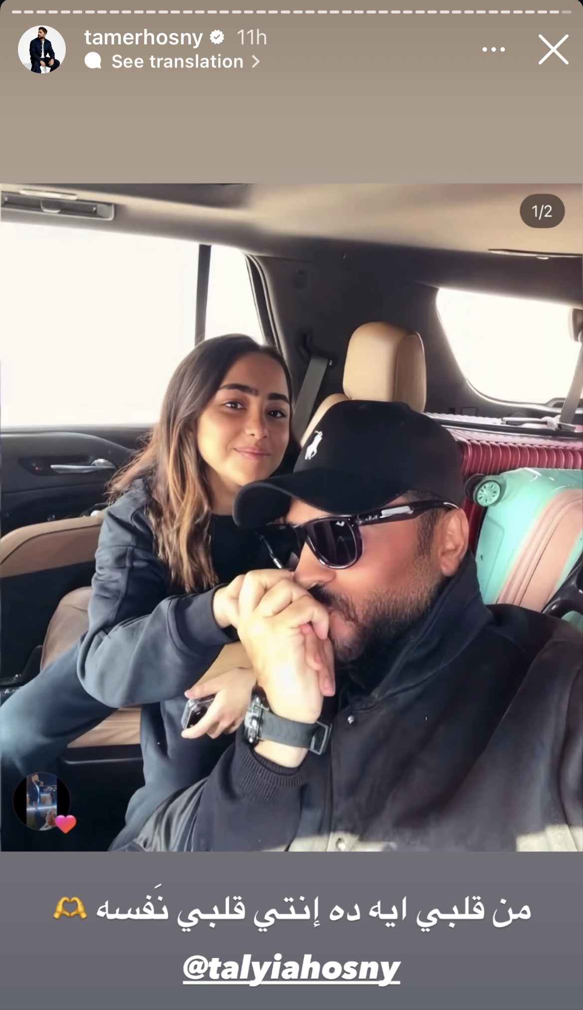 وخطف تامر حسني الأنظار بقبلة على يد ابنته، وكتب: “من قلبي ايه دا انتي قلبي نفسه”.