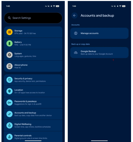 - قائمة “Accounts and backup” جديدة: تم دمج واستبدال القوائم السابقة المتعلقة بالنسخ الاحتياطي وكلمات المرور بحل موحد داخل الإعدادات.