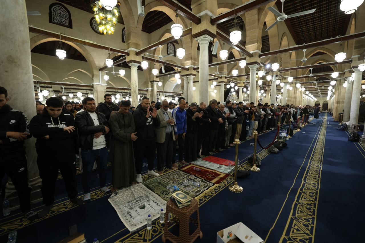 واصلت جموع المصلين التوافد إلى رحاب الجامع الأزهر، ليلة الجمعة، لإقامة صلاتي العشاء والتراويح في الليلة العاشرة من شهر رمضان المبارك، حيث ازدانت أروقة الجامع وساحاته بٱلاف المصلين الذين جاؤوا من كل فج عميق، في مشهد يعكس عالمية الأزهر ورسالته، للاستمتاع بما تتميز به لياليه من أجواء روحانية فريدة؛ مع تقديم مجموعة متنوعة من الملتقيات والدروس العلمية، بجانب إقامة صلاتي العشاء والتراويح يوميا، طوال الشهر الفضيل، بالقراءات العشر على يد نخبة من كبار قرّاء القرآن الكريم في الأزهر الشريف.