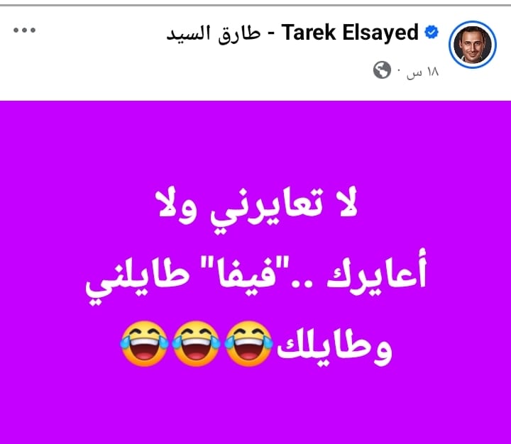 وكتب طارق السيد نجم الكرة المصرية السابق السابق عبر حسابه علي فيسبوك "لا تعايرني ولا أعايرك .."فيفا" طايلني وطايلك".
