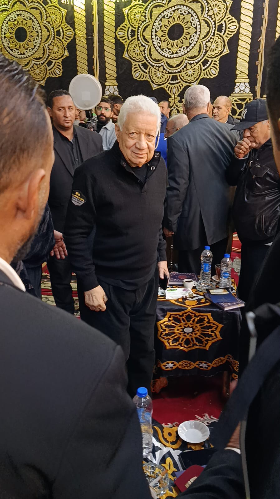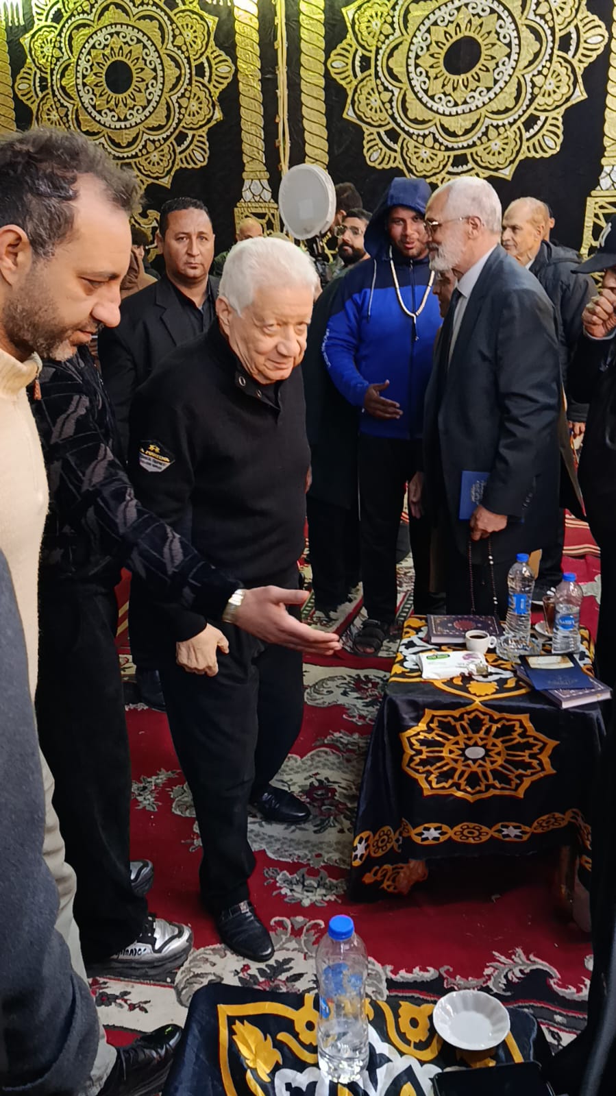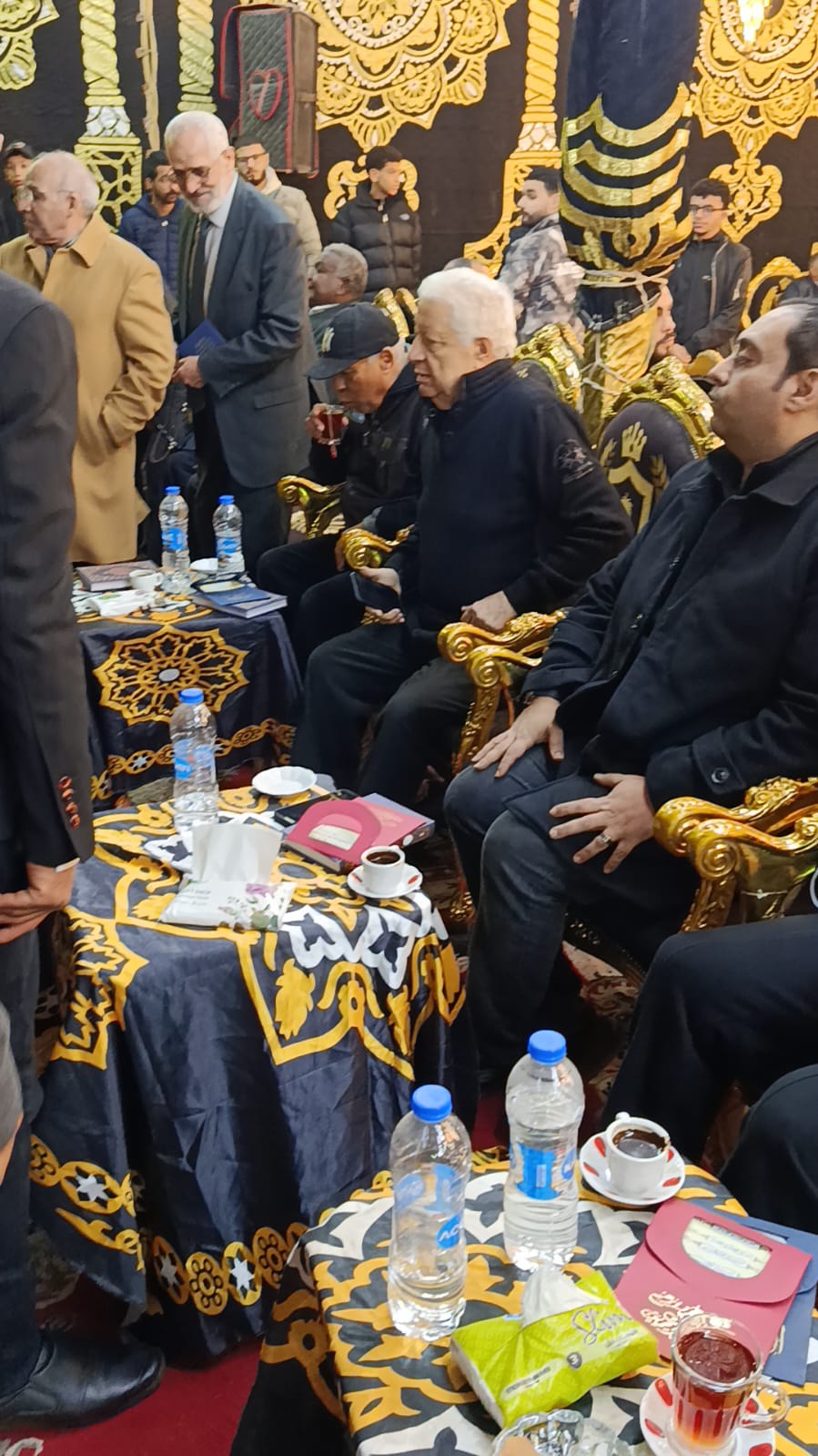 قدة مجدي عبد الغني نجم الأهلي ومنتخب مصر السابق، وفاروق جعفر نجم الزمالك ومنتخب مصر، والمستشار مرتضى منصور رئيس نادي الزمالك السابق، وأحمد مرتضى منصور، واجب العزاء في مصطفى رياض نجم الترسانة الأسبق.