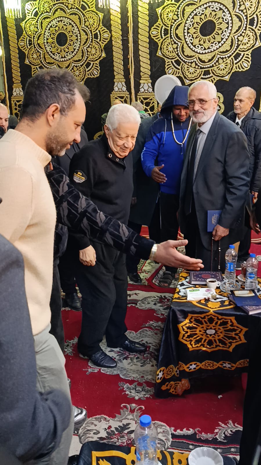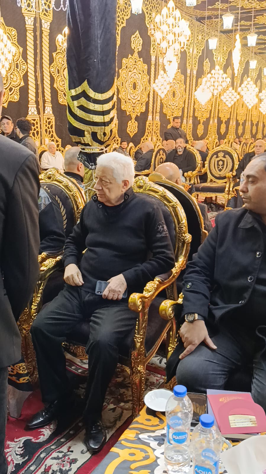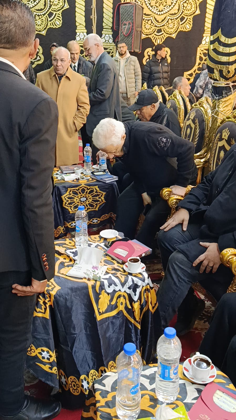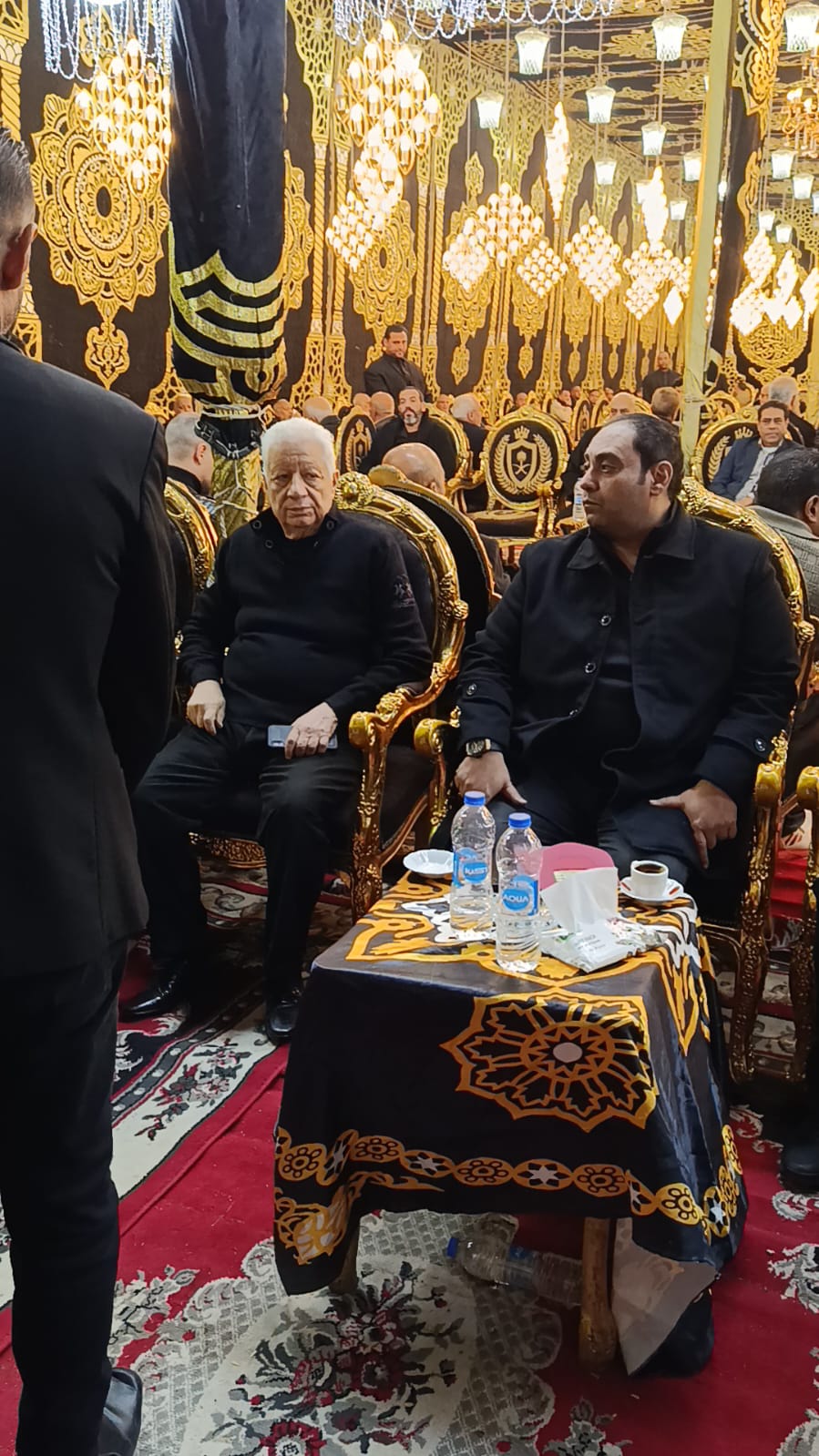 قدة مجدي عبد الغني نجم الأهلي ومنتخب مصر السابق، وفاروق جعفر نجم الزمالك ومنتخب مصر، والمستشار مرتضى منصور رئيس نادي الزمالك السابق، وأحمد مرتضى منصور، واجب العزاء في مصطفى رياض نجم الترسانة الأسبق.