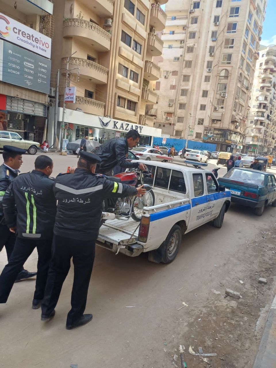 اضاف محافظ الشرقية انه شهدت الشوارع والمحاور الحيوية ذات الكثافات المرتفعة بمدينة الزقازيق انتشارا للجان المرورية المفاجئة، والتي استهدفت التعامل الحاسم مع الدراجات النارية المخالفة لما تسببه من إزعاج وإرباك للحركة المرورية وفحص تراخيص السيارات الملاكي والتأكد من سريان رخصتي القيادة والتسيير.