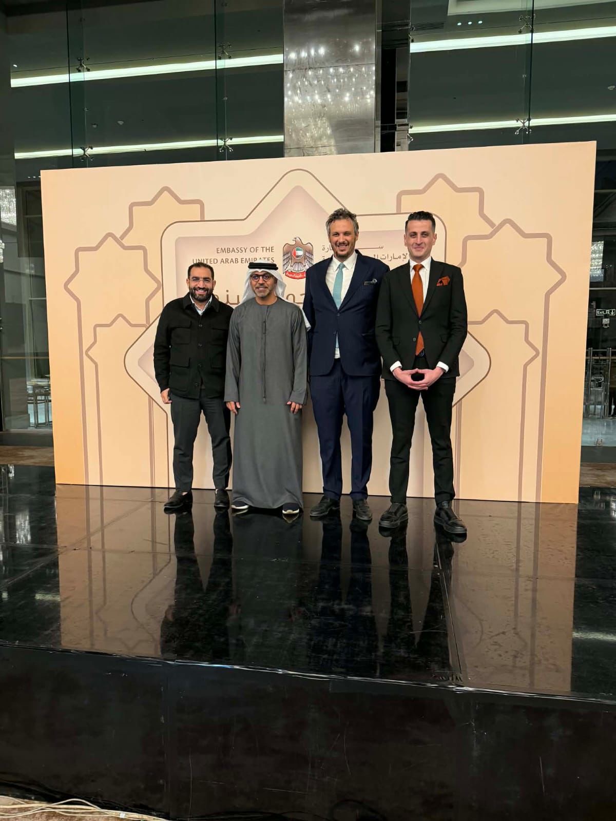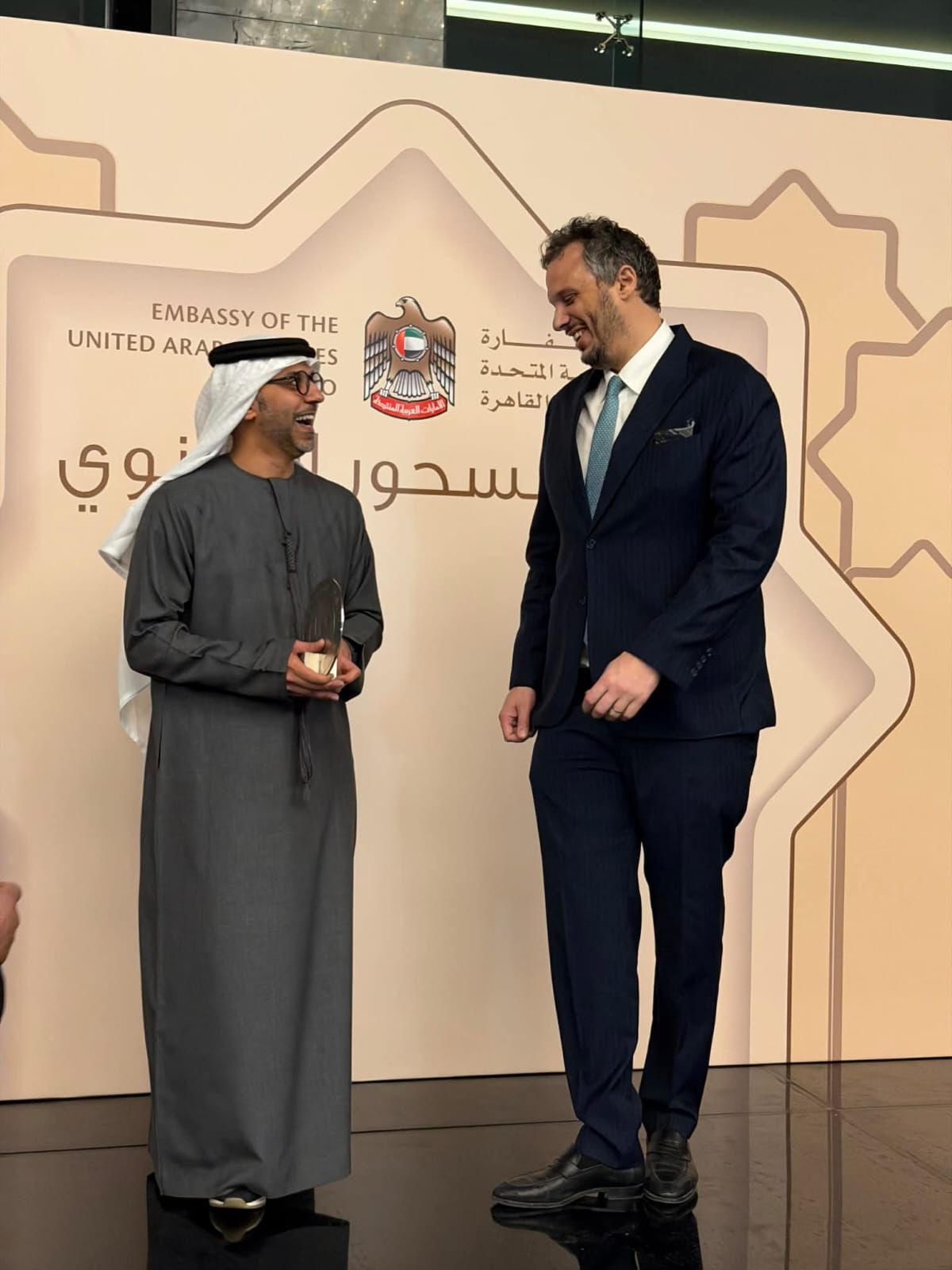 وفد من نادي بيراميدز برئاسة المهندس ممدوح عيد الرئيس التنفيذي لنادي بيراميدز ومصطفى طنطاوي مدير الإعلام والاتصال المؤسسي و شريف جمال مدير العلاقات العامة بالنادي، يلبي دعوة حمد عبيد الزعابي سفير دولة الإمارات العربية المتحدة في القاهرة على حفل السحور السنوي للسفارة.