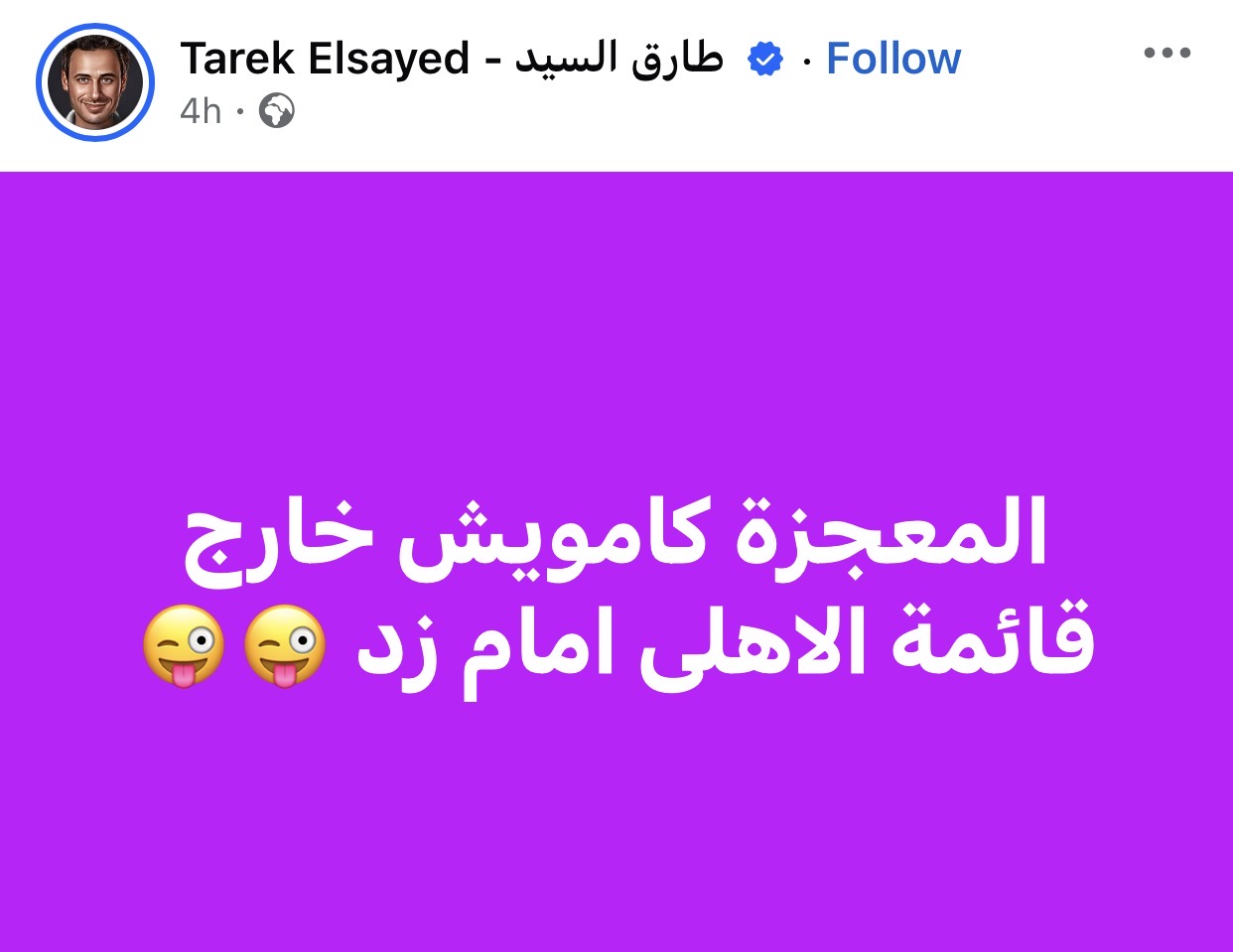 وكتب طارق السيد عبر حسابه علي موقع التواصل الاجتماعي فيسبوك "المعجزة كامويش خارج قائمة الأهلى أمام زد"