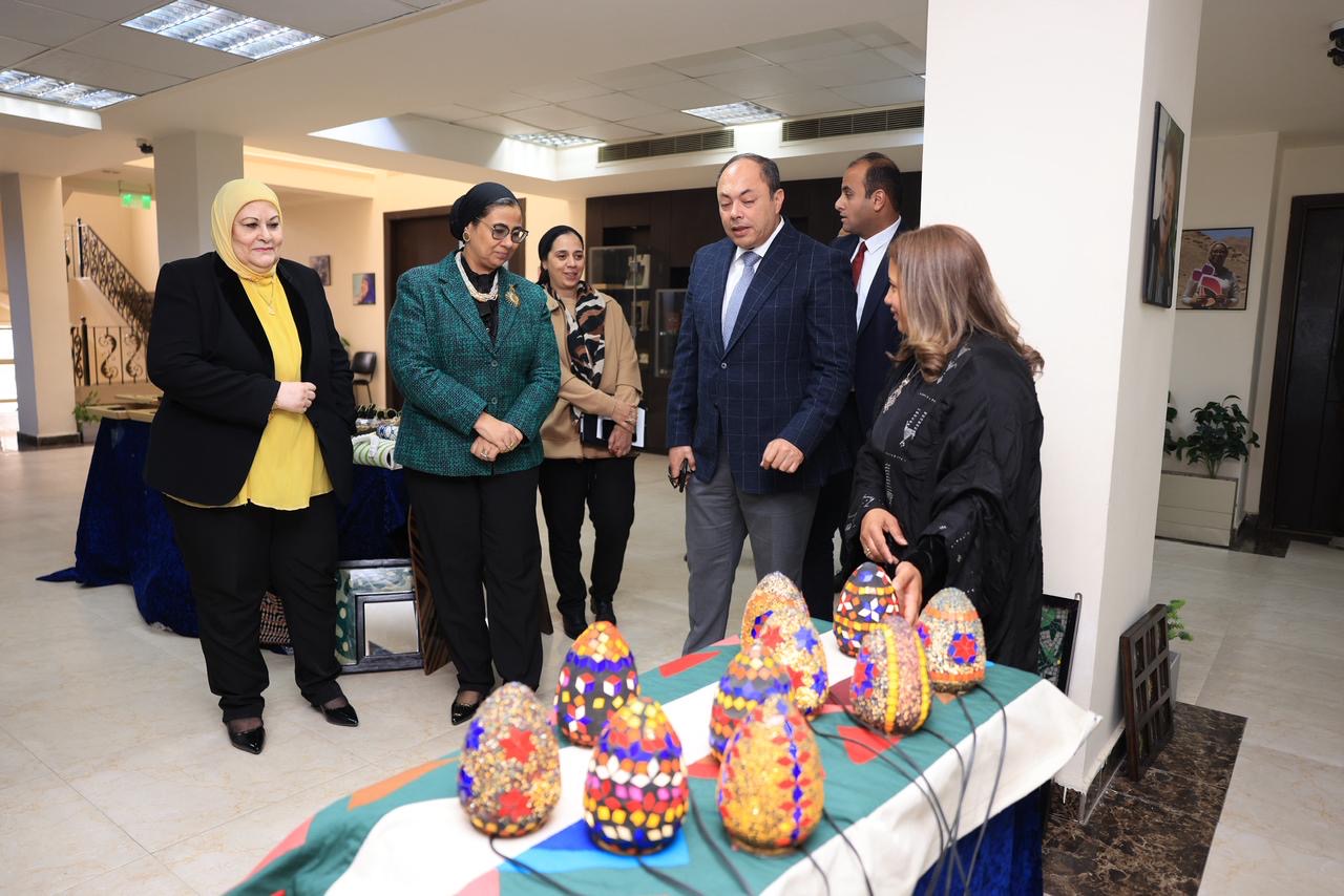 كما تضمنت الزيارة تفقد معرض المنتجات بالمجلس، والذي يضم نماذج متميزة من الحرف اليدوية والتراثية التي تم تدريب السيدات عليها داخل مركز ميدوم للحرف اليدوية والتراثية التابع للهيئة بمحافظة بني سويف، وذلك بالتعاون مع المجلس والقائم بعملية تدريب السيدات، حيث أشاد رئيس الهيئة بجودة المعروضات وتنوعها، مؤكدًا استمرار تقديم الدعم الفني والتسويقي لتلك المنتجات، بما يسهم في تعزيز تنافسيتها في الأسواق المختلفة.
