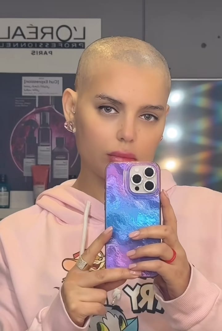 وظهرت هبة السيسي في الصور حليقة الرأس عبر صفحتها على موقع التواصل الاجتماعي إنستجرام.