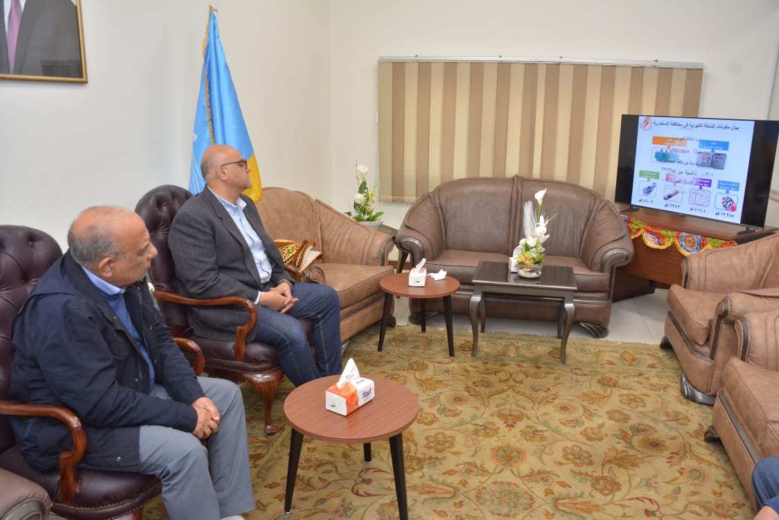 حيث قام الدكتور محمود عصمت يرافقه المهندس أيمن عطية محافظ الإسكندرية اليوم السبت بزيارة ميدانية إلى مركز تحكم غرب التابع لشركة الإسكندرية لتوزيع الكهرباء، الذى يضم فى نطاقه الجغرافى (12) محطة محولات و(100) لوحة حلقية ذكية و(56) موزع جهد متوسط و(50) مكثف جهد متوسط سعة 300 ك.ف و(5000) عداد ذكي من المشروع الذى يشمل 300 ألف عداد ذكي.