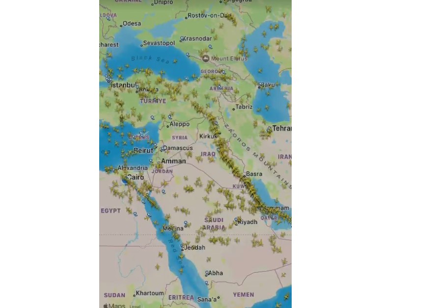 بحسب المشاهد التي بثها فلايت رادار، فإن رحلات الطيران هربت من محيط المجال الجوي الإيراني، متجاوزه أجواء العراق، باتجاه المجال الجوي المصري والسعودي فرارًا من أعمال القصف التي شهدتها المنطقة صباح اليوم، وهو ما تسبب في ازدحام كبير فوق الأجواء المصرية التي استقبلت الحركة الجوية الكثيفة اليوم، من خلال الطيران العابر للأجواء.