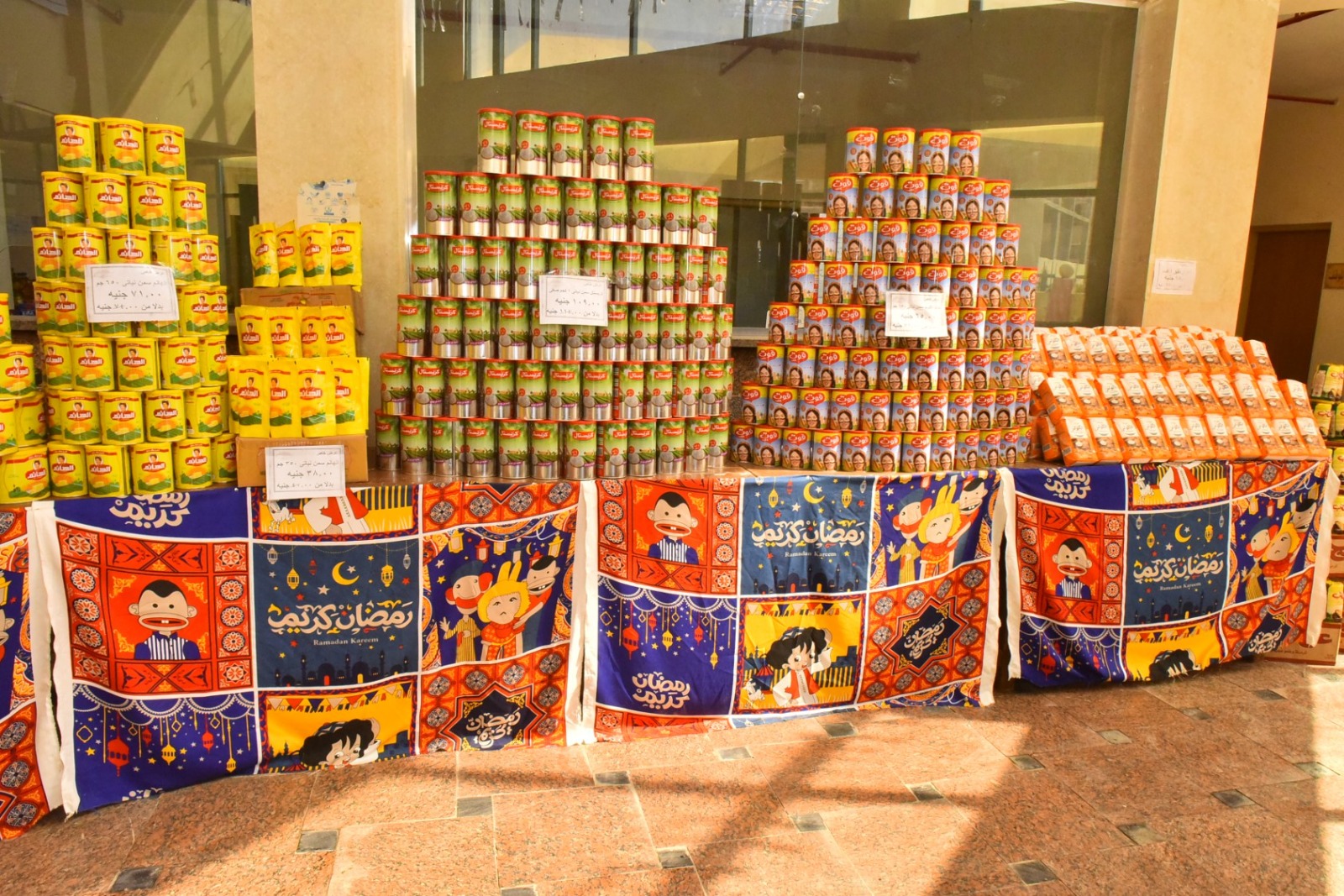 وأوضح أن المعرض يضم تشكيلة واسعة من السلع الغذائية الأساسية ومستلزمات رمضان، من بينها السكر والزيت والأرز والمكرونة والدقيق والبلح ومنتجات الألبان والجبن والحلويات والمجمدات، وغيرها من السلع التي تطرح بتخفيضات تصل إلى 30% مقارنة بمثيلاتها في الأسواق.