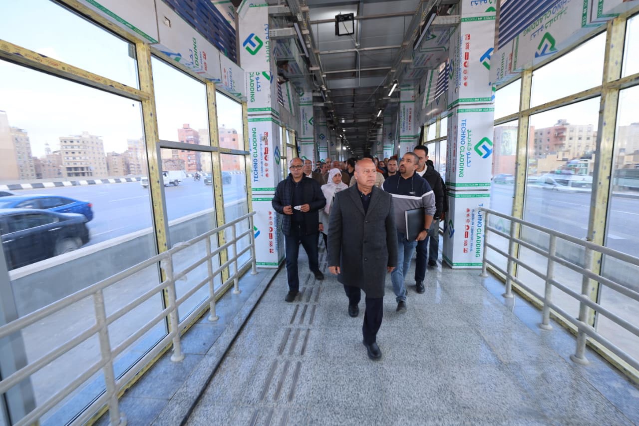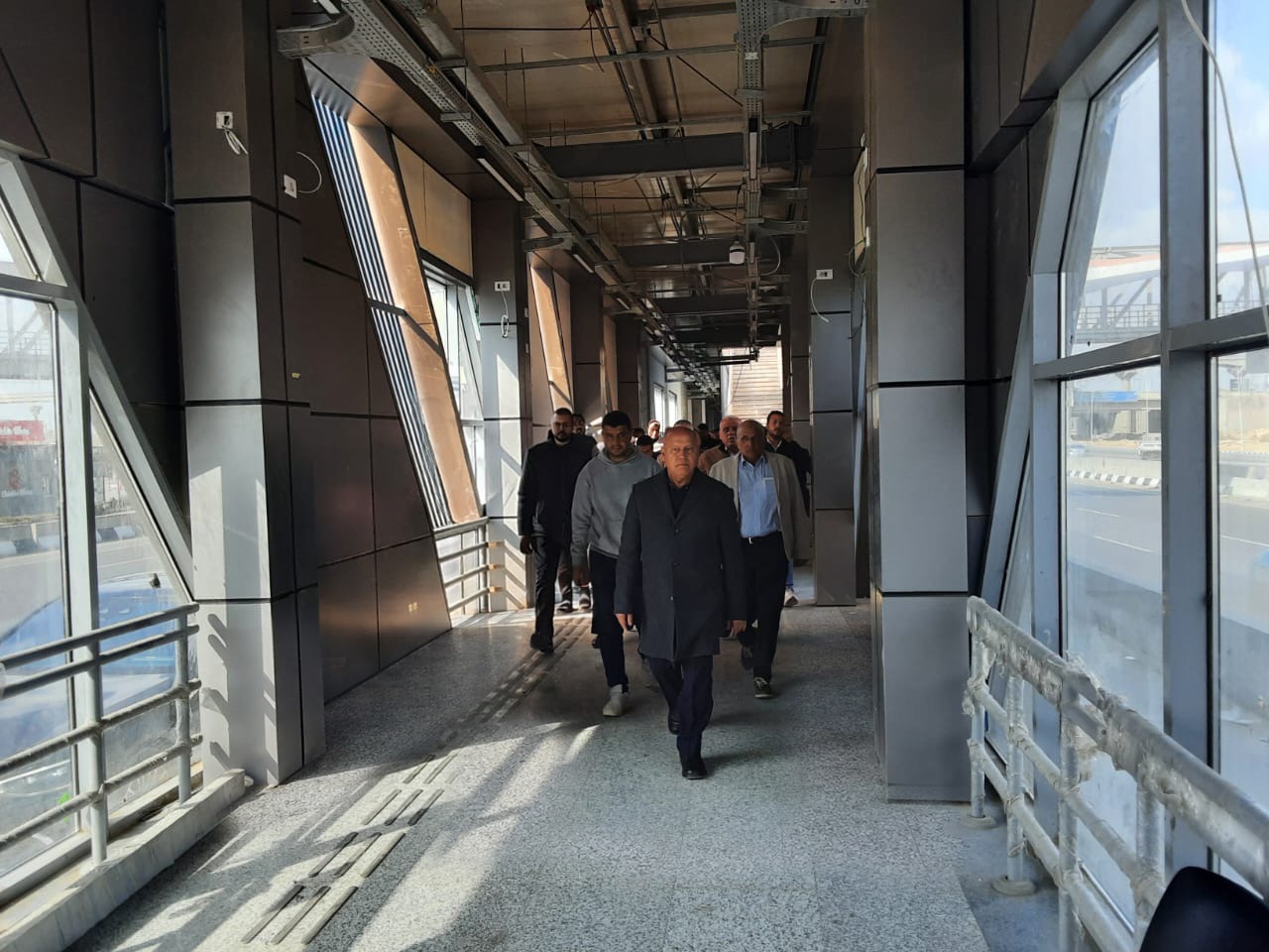 وتم خلال الجولة تفقد الوزير لمحطات المشروع وشاهد طرق الربط بينها وبين المواقف الموجودة أسفل الطريق الدائري والتي تخدم "القادمون" من والى الطريق الدائري و كذلك كيفية وصول الراكب للمحطات من تلك المواقف سواء عبر كباري المشاة أو الأنفاق وحتى استقلال الأتوبيس الترددي بالإضافة إلى استعراض أماكن الانتظار داخل المحطات وطرق الحصول على التذاكر والمرور من البوابات الإلكترونية للأتوبيس.