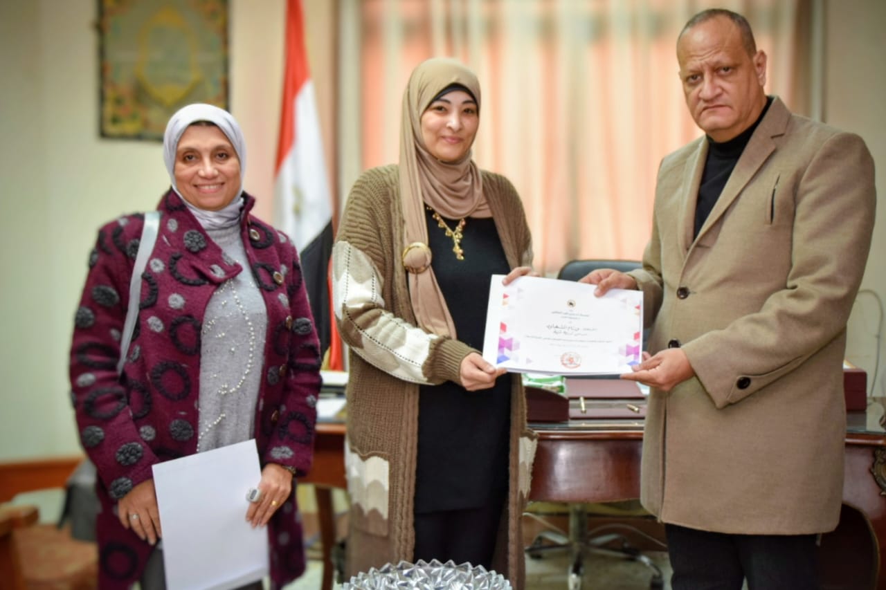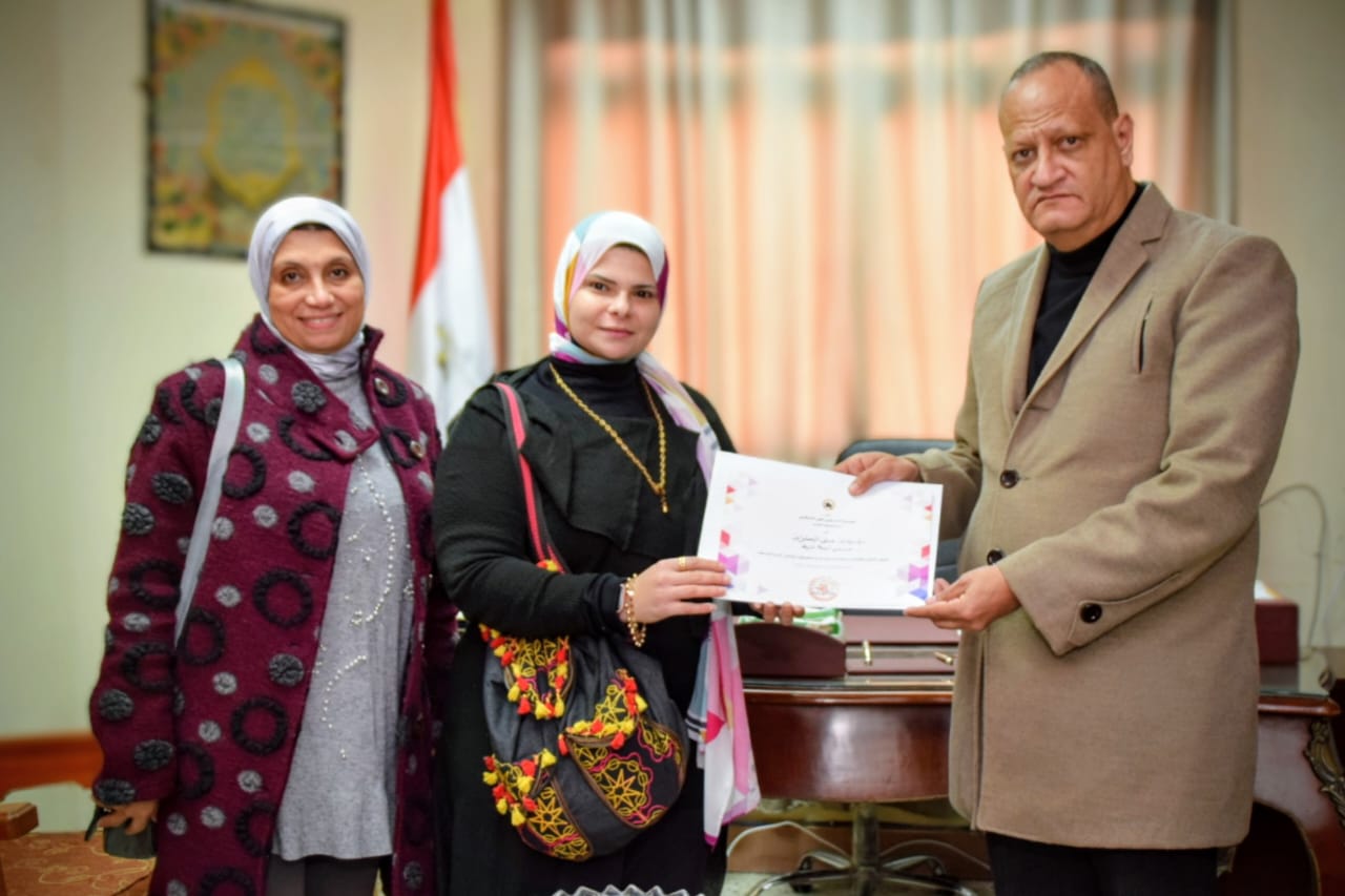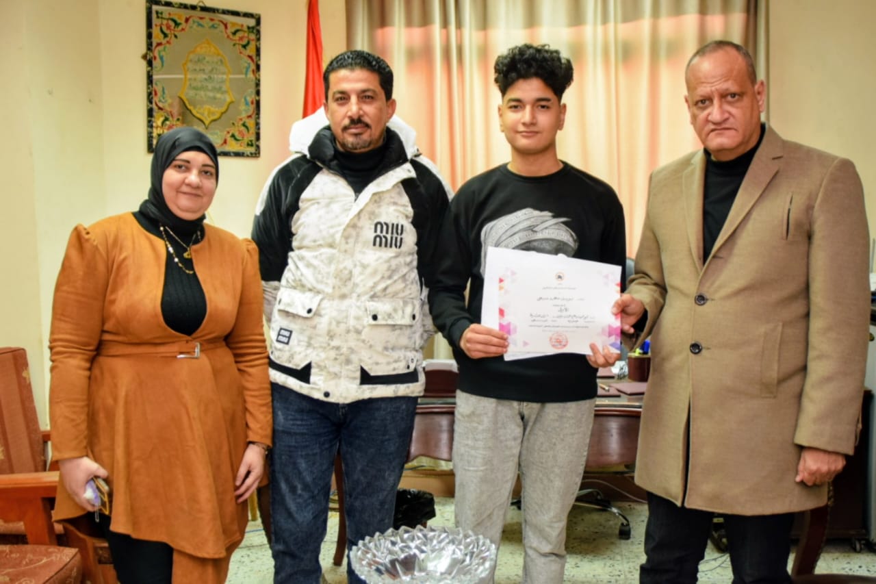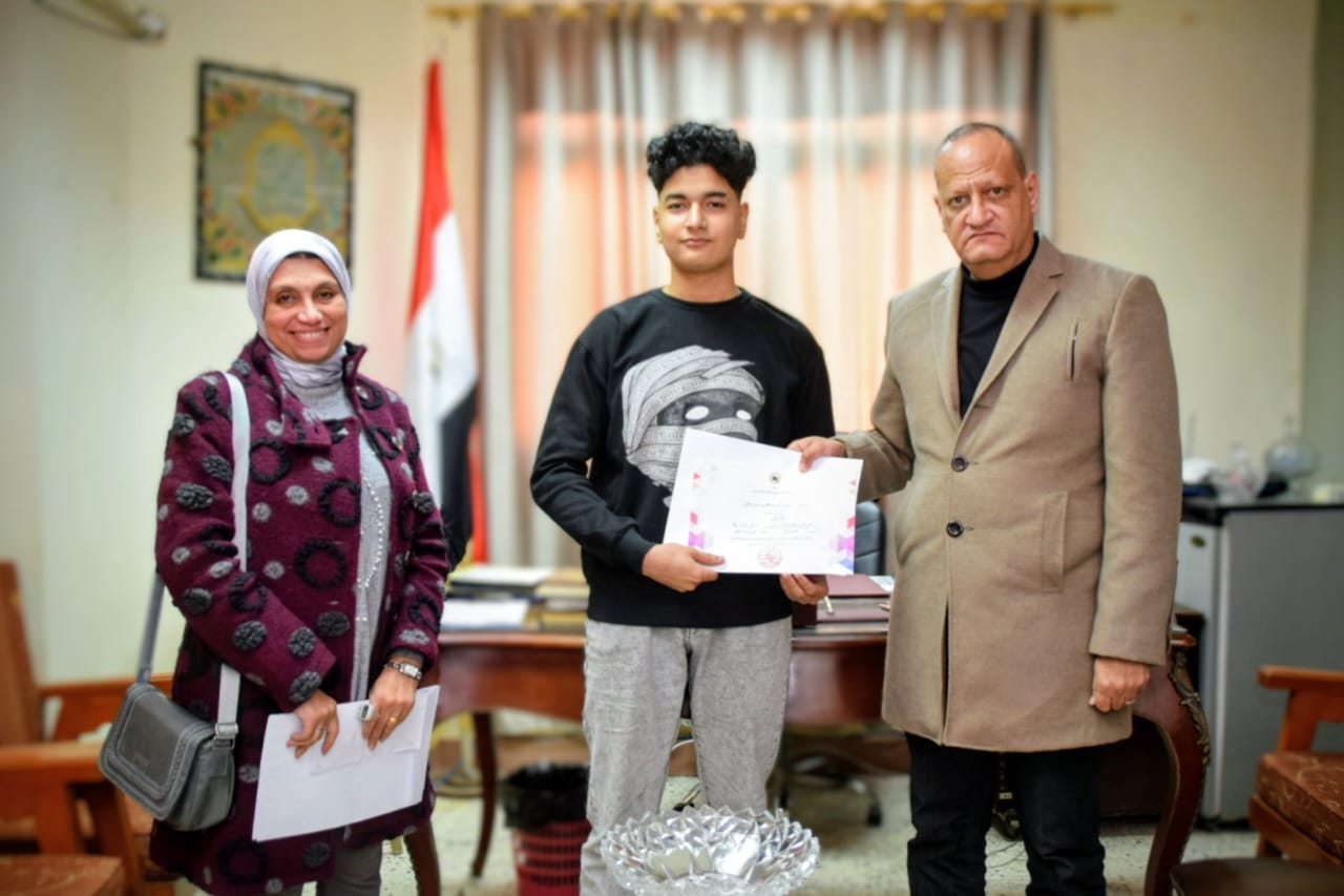 كرم محمود بدوي، وكيل وزارة التربية والتعليم بمحافظة بورسعيد الطلاب الفائزين في المسابقة الفنية الوزارية "آدم حنين" وذلك بمقر مكتبة بديوان المديرية.