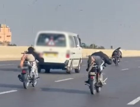 كشفت الأجهزة الأمنية ملابسات مقطع فيديو تم تداوله بإحدى مواقع التواصل الإجتماعى تضمن قيام قائدى 3 دراجات نارية بآداء حركات إستعراضية بأحد الطرق السريعة بالجيزة معرضين حياتهم والمواطنين للخطر.