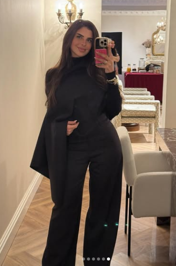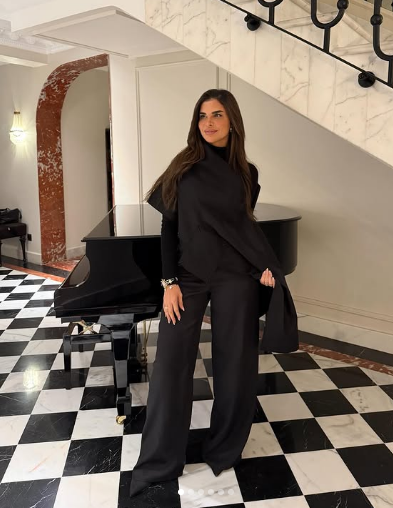 تألقت زوجة كريم فهمي في الصور بإطلالة عصرية جمعت بين البساطة والأناقة، حيث ارتدت بنطالا باللون الأسود الذي لا يحمل أي نقوشات أو تطريزات ونسقت معه بلوزة بنفس اللون.