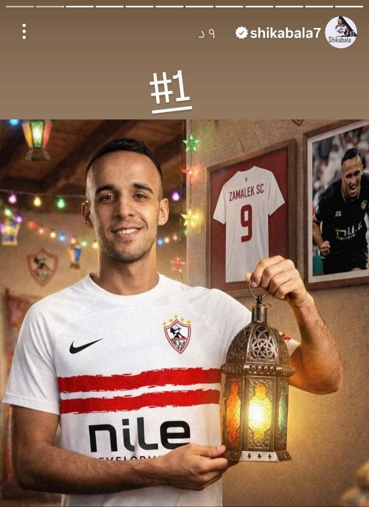 ونشر أسطورة الزمالك محمود عبد الرازق شيكابالا ، صورة للاعب الزمالك ناصر منسي بالذكاء الاصطناعي احتفالا بتصدر الفريق جدول ترتيب الدوري المصري الممتازعبر حسابه الشخصي بموقع إنستجرام ، مشيرا إلى علامة رقم واحد .