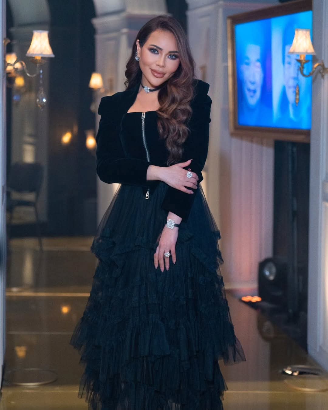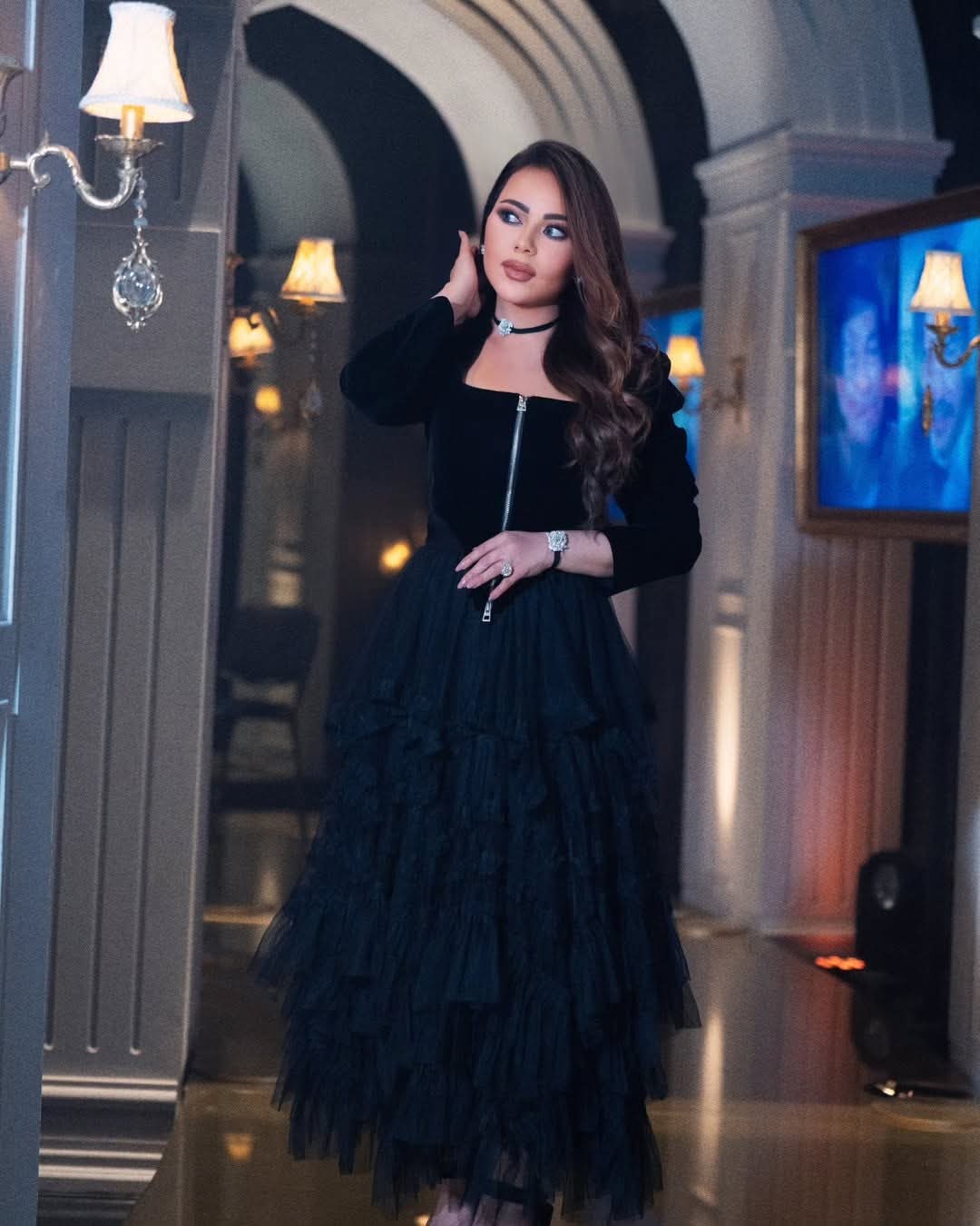 كما لفتت الأنظار بتنسيق الإكسسوارات بعناية، سواء من خلال المجوهرات الراقية أو الأحذية ذات الكعب العالي التي أضافت لمسة فخامة لإطلالتها.