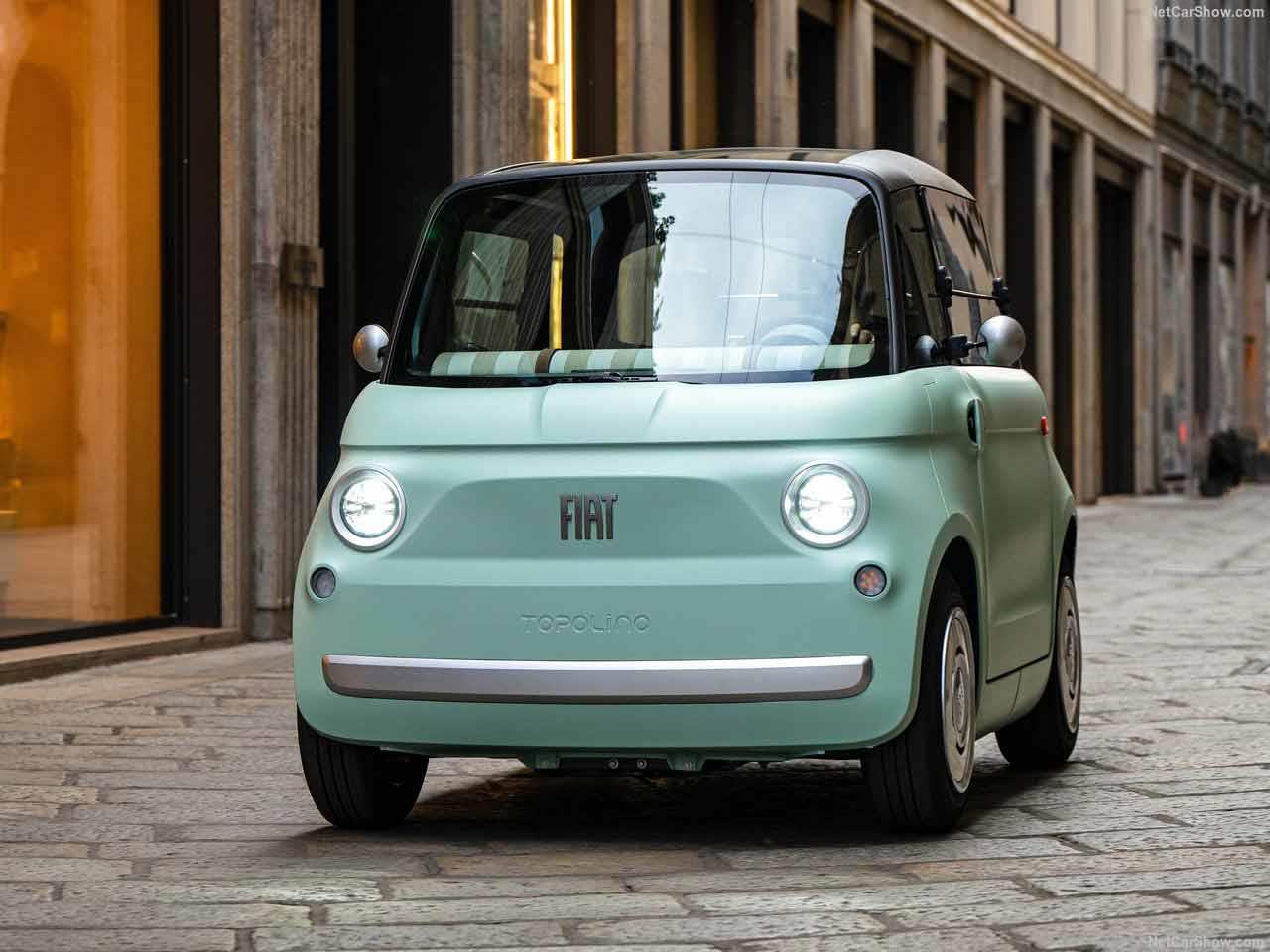 سيارة فيات Topolino الكهربائية صغيرة جداً، مصممة للتنقل داخل المدن، بمحرك كهربائي بقوة 8 أحصنة، وسرعة قصوى 45 كم/ساعة، ومدى يصل إلى 75 كم، وبطارية 5.4 كيلوواط/ساعة يمكن شحنها في 4 ساعات، وتأتي بتصميم مميز بدون أبواب أو بسقف قماشي قابل للطي (Dolce Vita) لتوفير تجربة ممتعة وبسيطة.