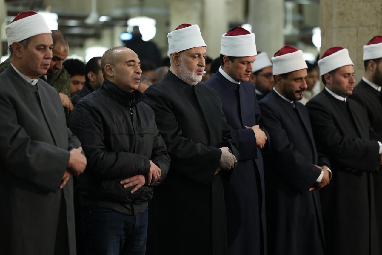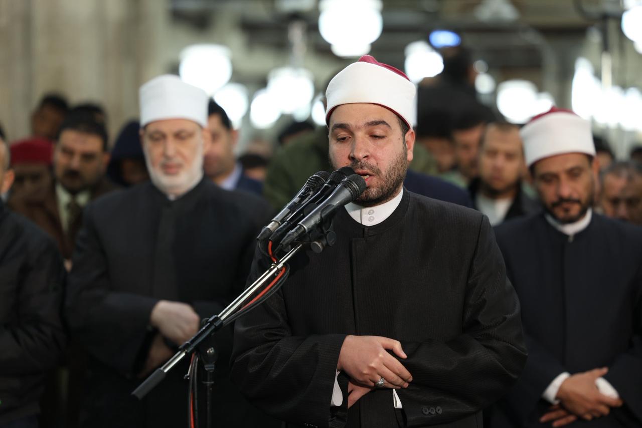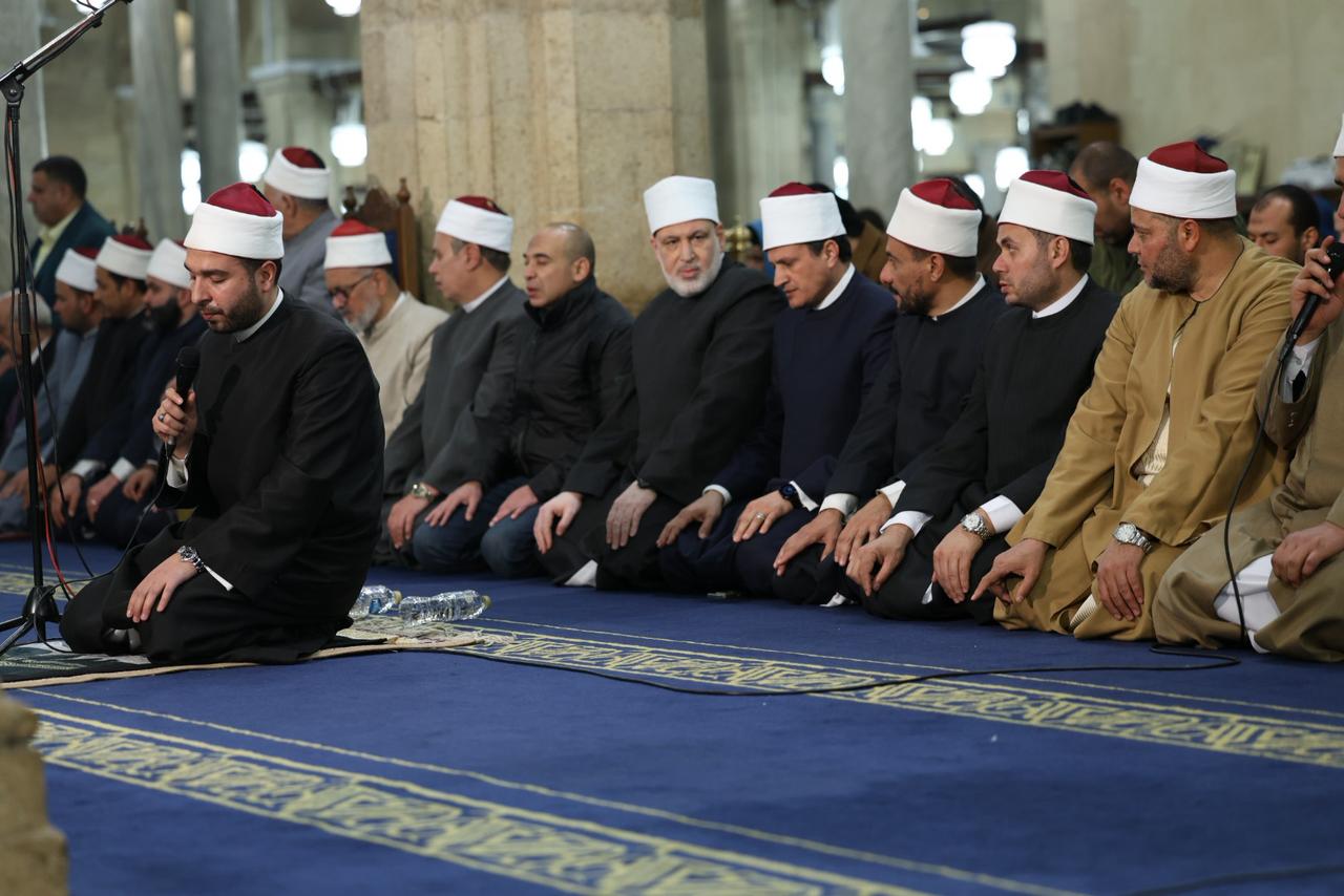 وتقدَّم صفوف المصلين د. محمد الضويني، وكيل الأزهر، ود. عبد المنعم فؤاد، المشرف العام على أروقة الجامع الأزهر، والشيخ حسن عبد النبي، وكيل لجنة مراجعة المصحف بالأزهر الشريف، إلى جانب لفيف من قيادات الأزهر وعلمائه، وقد أقيمت صلاة العشاء من سورة يوسف برواية حفص عن عاصم، وأمّ المصلين فيها الدكتور محمود عزازي.