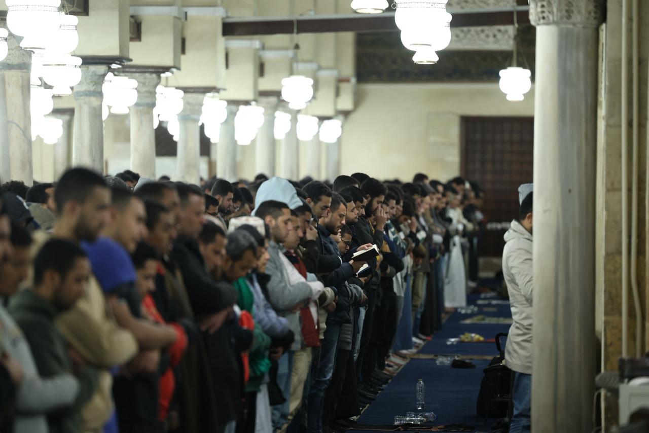 آلاف المصلين يؤدون صلاتي العشاء والتراويح بالجامع الأزهر