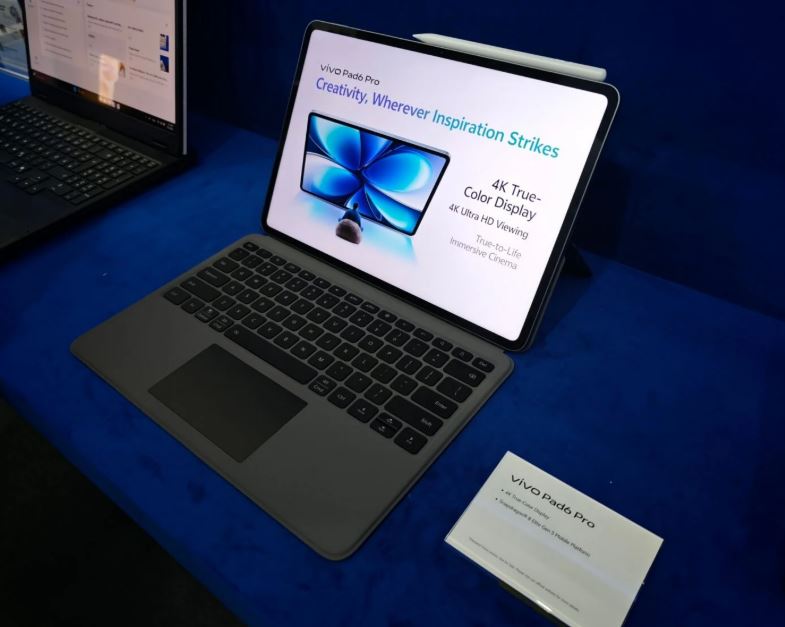 تم عرض جهاز Vivo Pad 6 Pro مزودًا بلوحة مفاتيح وقلم، وتم تقديمه كجهاز لوحي يركز على الإنتاجية.
