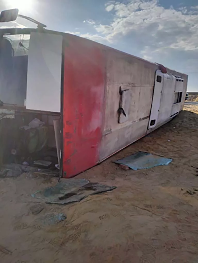 وتلقت هيئة الإسعاف، بلاغًا يفيد بانقلاب أتوبيس يتبع إحدى الشركات، وعلى الفور تم الدفع بـ26 سيارة إسعاف إلى موقع الحادث، وجرى التعامل السريع مع المصابين وتقديم الإسعافات الأولية لهم في مكان الواقعة.