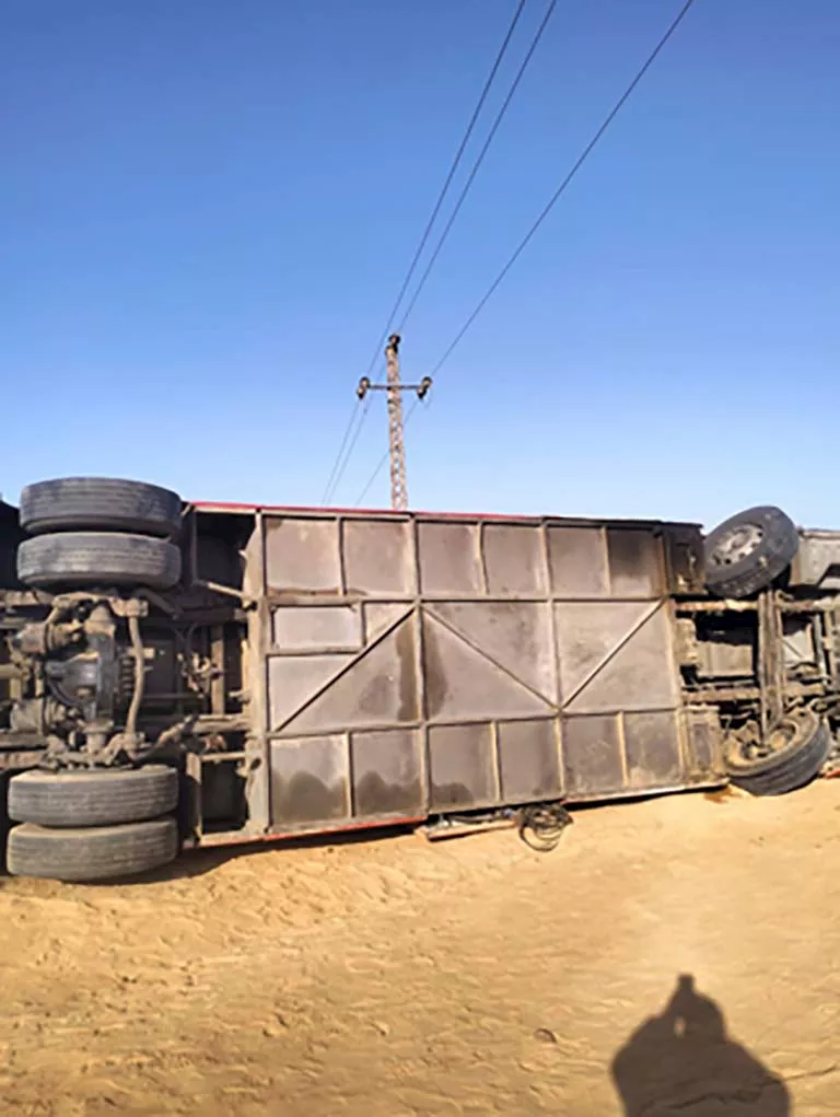 أُصيب 34 شخصًا، صباح اليوم، في حادث انقلاب أتوبيس على طريق 36 الحربي بعد صينية أبو صوير، في اتجاه مدينة القصاصين بمحافظة الإسماعيلية.